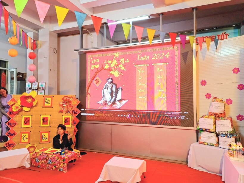 Cuối cùng là phần trao thưởng cho các đội thi và đôi lời chúc Tết đến toàn thể các con học sinh nhân dịp Tết đến của cô giáo Lê Bảo Ngọc- Hiệu trưởng nhà trường.