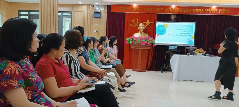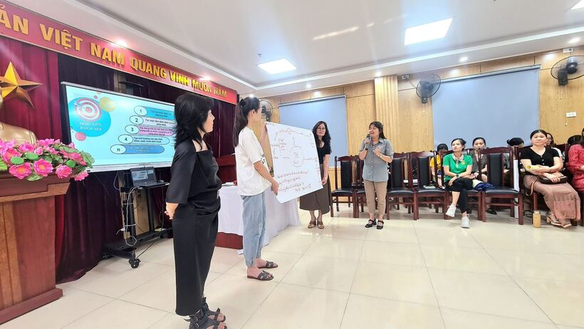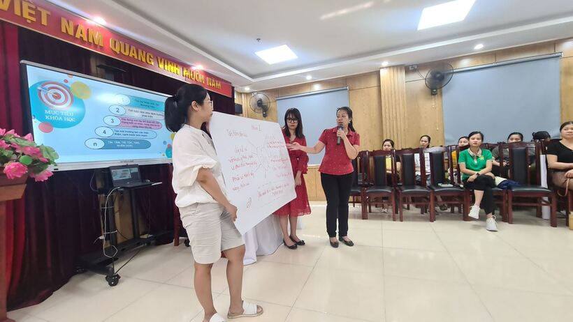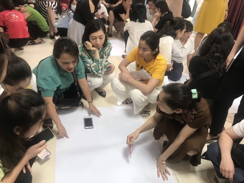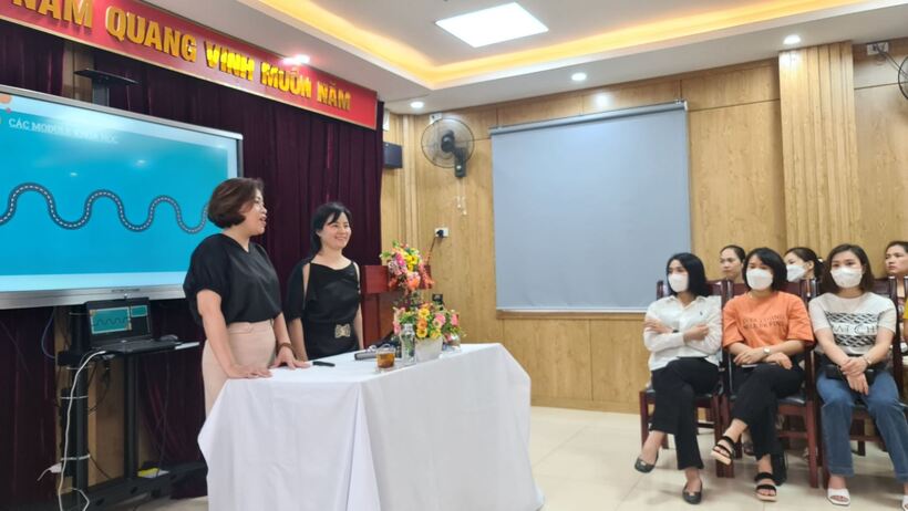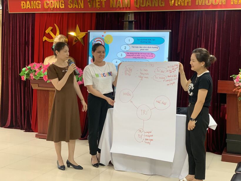 Từ cô cấp dưỡng, kế toán, bác bảo vệ, các cô giáo của các nhà trường đã rất hào hứng tham gia các trò chơi trải nghiệm, bổ ích, ý nghĩa và luôn chứa một thông điệp riêng mà giảng viên mang đến cho lớp học.