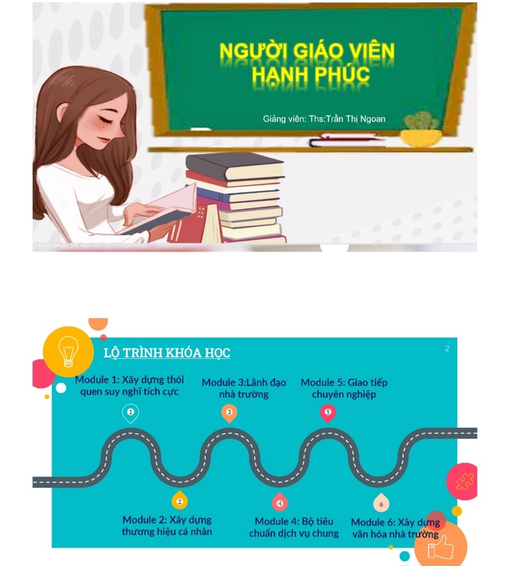 Giảng viên Trần Thị Ngoan đã giới thiệu với lớp học 2 Module : "Xây dựng thói quen suy nghĩ tích cực" và "Xây dựng thương hiệu cá nhân"