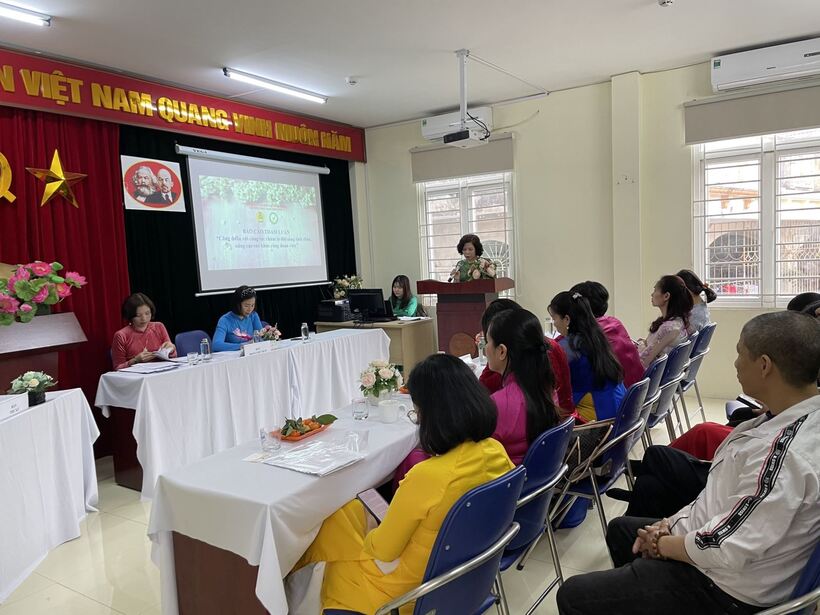 Đ/c Đỗ Kim Oanh thông qua báo cáo Kết quả hoạt động Công đoàn nhiệm kỳ 2019-2022
