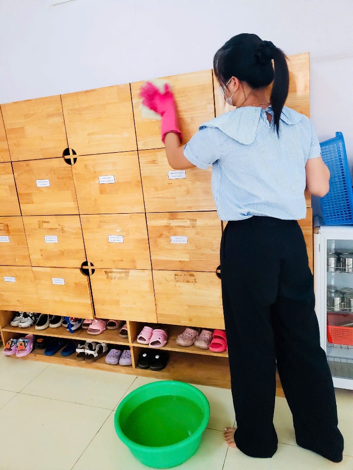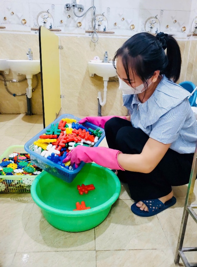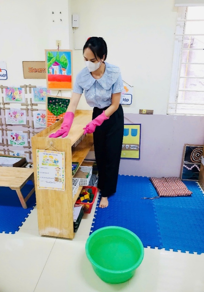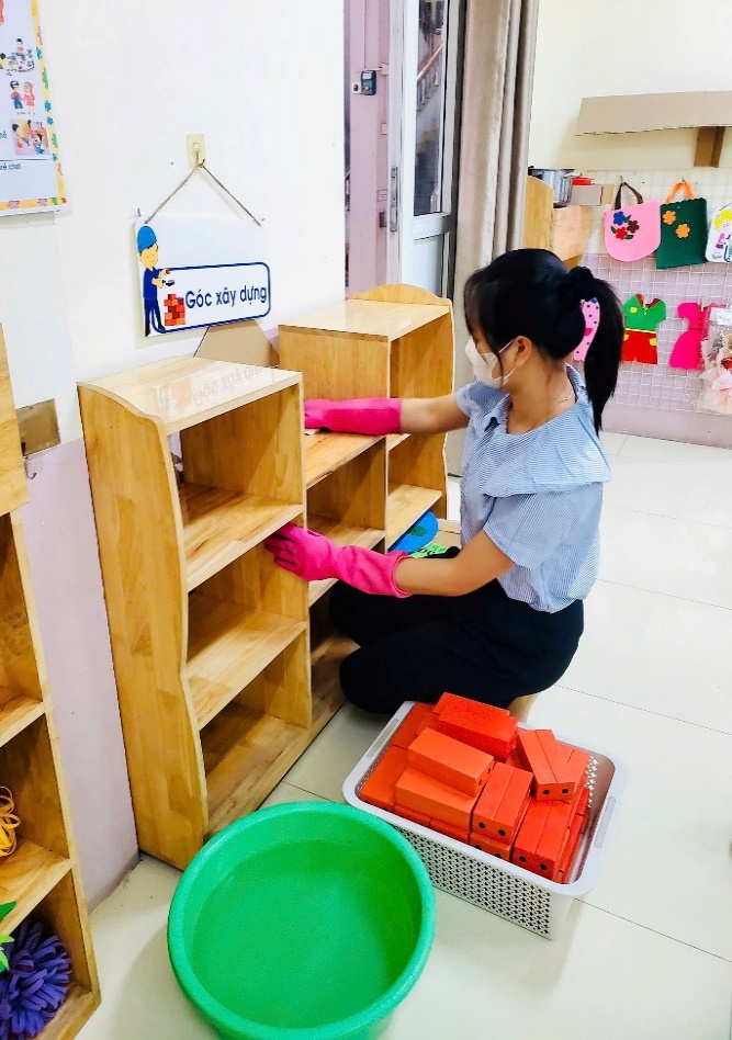 Ngay từ đầu tháng 8, các cô giáo đã tiến hành vệ sinh, trang trí lại lớp học, bổ sung nhiều góc hoạt động hấp dẫn và phong phú, tạo nên một môi trường thân thiện, gần gũi và khuyến khích sự sáng tạo của trẻ. Các kệ đồ dùng, đồ chơi, học liệu được sắp xếp khoa học, an toàn, giúp trẻ hứng thú hơn trong các giờ học và vui chơi.