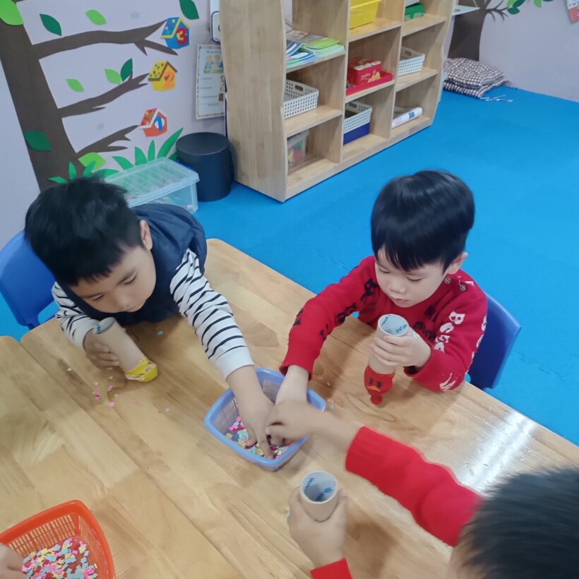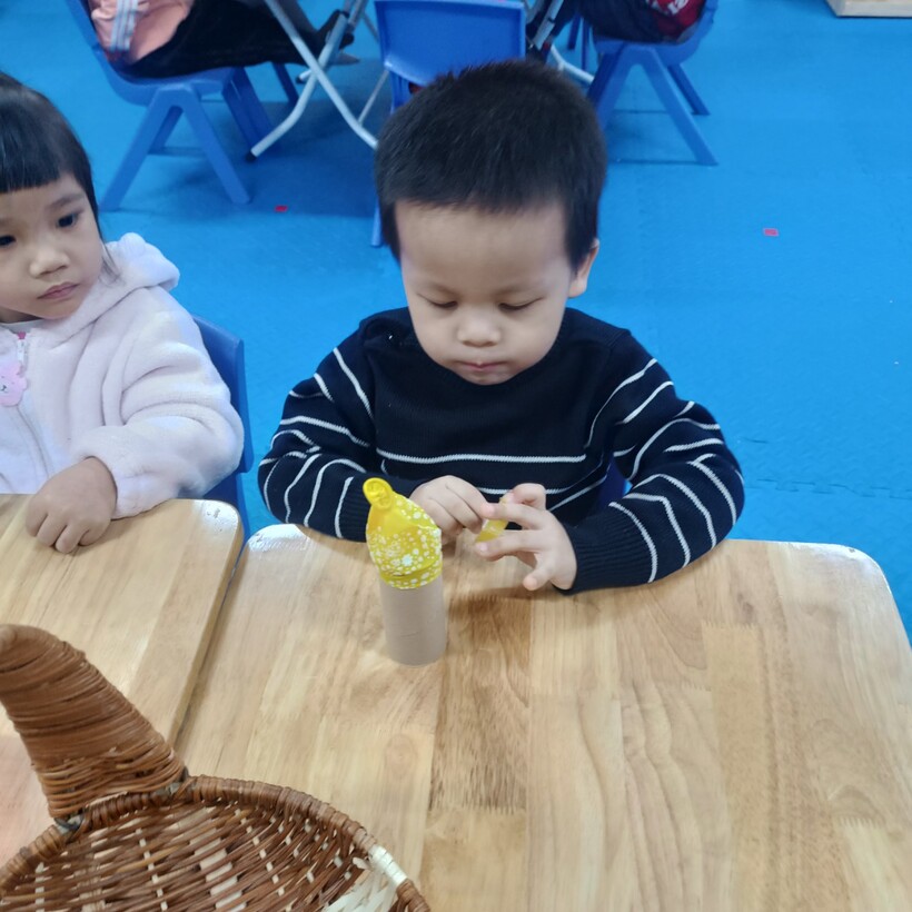 Các bé lớp Mẫu giáo bé C1 đã được cùng nhau trải nghiệm làm pháo hoa từ bóng bay và lõi giấy vệ sinh thật là thú vị.