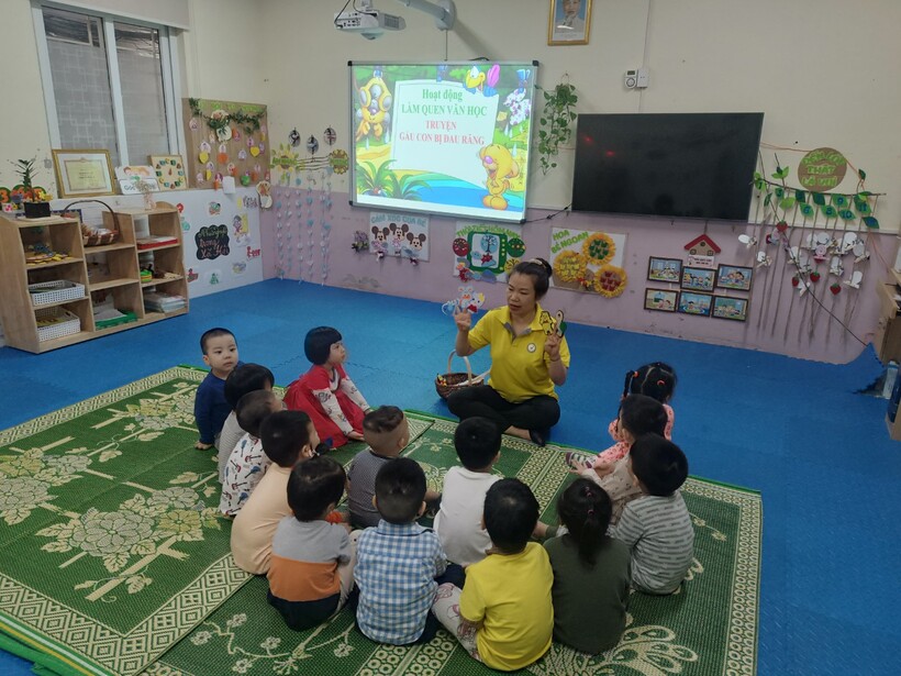 Thật thú vị khi được xem những hình rối ngộ nghĩnh nhảy múa trên chiếc phông trắng với lời kể chuyện truyền cảm của cô giáo. Các bạn nhỏ lớp C1 rất hào hứng khi tham gia hoạt động làm quen với tác phẩm văn học -Truyện "Gấu con bị sâu răng". Thật vui khi các bé được "học bằng chơi, chơi mà học" từ các hoạt động như thế này.