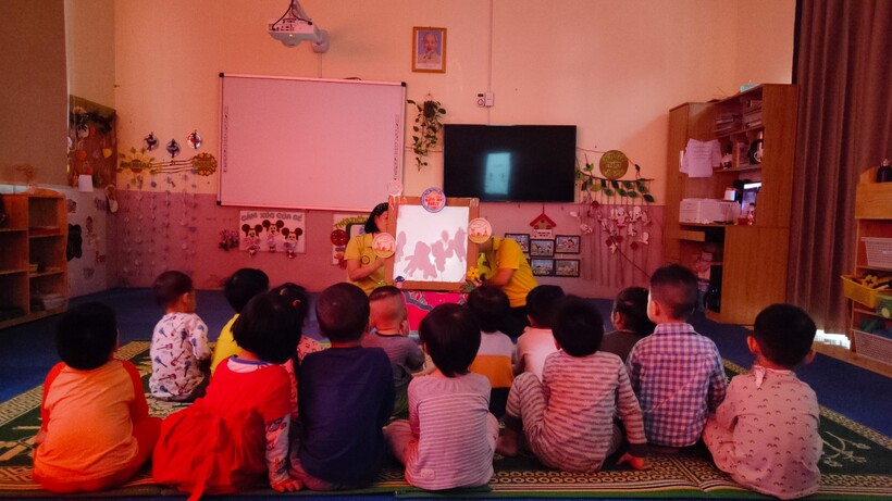 Cùng với các buổi học thú vị xoay quanh chủ đề "Ánh sáng- Năm mới", cô giáo đã tổ chức buổi chiếu rối bóng, với nội dung chuyển thể từ truyện "Gấu con bị sâu răng”. Câu chuyện kể về việc bạn Gấu vì lười đánh răng nên đã bị sâu răng rất đau.