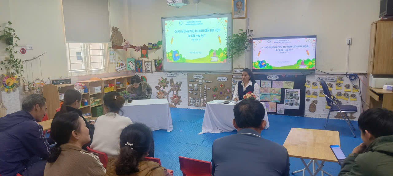 Cuộc họp phụ huynh sơ kết học kỳ I của lớp Mẫu giáo lớn A2, Trường Mẫu giáo Chim Non đã được tổ chức trong không khí thân mật và nghiêm túc. Tại buổi họp, giáo viên chủ nhiệm đã báo cáo khái quát tình hình học tập, rèn luyện và sự phát triển của các bé trong học kỳ vừa qua, đồng thời nêu rõ những ưu điểm nổi bật cũng như một số mặt còn hạn chế cần phối hợp khắc phục. Phụ huynh được lắng nghe chia sẻ về chương trình học, các hoạt động giáo dục, chăm sóc trẻ và định hướng giáo dục trong học kỳ II. Buổi họp cũng là dịp để giáo viên và phụ huynh trao đổi, thống nhất các biện pháp phối hợp nhằm giúp các bé lớp A2 phát triển toàn diện cả về thể chất, trí tuệ và kỹ năng sống.