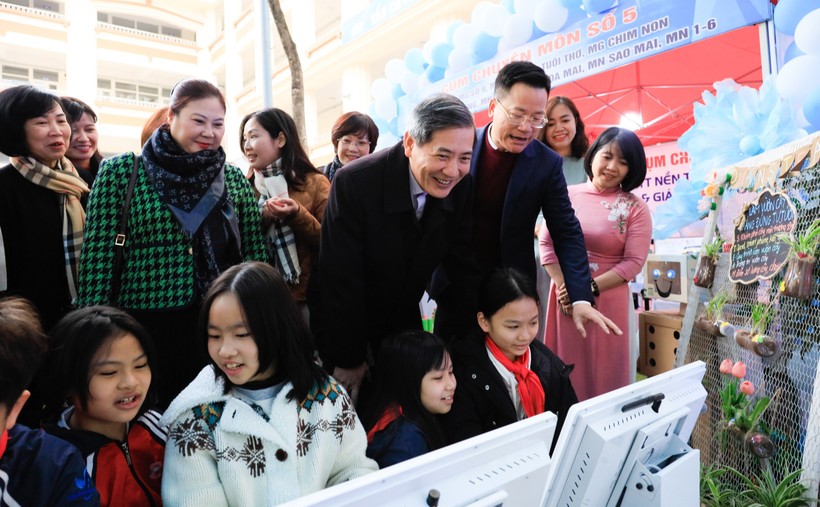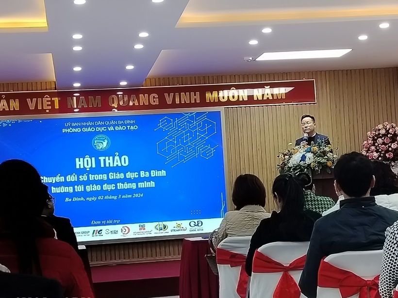 Bí thư Quận ủy Ba Đình - Hoàng Minh Dũng Tiến, PGS.TS Trịnh Hoài Thu - Phó Vụ trưởng Vụ Giáo dục Tiểu học Bộ GD&ĐT cùng các chuyên gia công nghệ thông tin, đại diện lãnh đạo các Phòng GD&ĐT quận, huyện (Ba Vì, Hoàn Kiếm) TP Hà Nội, Phòng GD&ĐT TP Lào Cai (tỉnh Lào Cai) và bộ quản lý, giáo viên trường học (Mầm non, Tiểu học, THCS) trên địa bàn quận Ba Đình dự và tham luận.