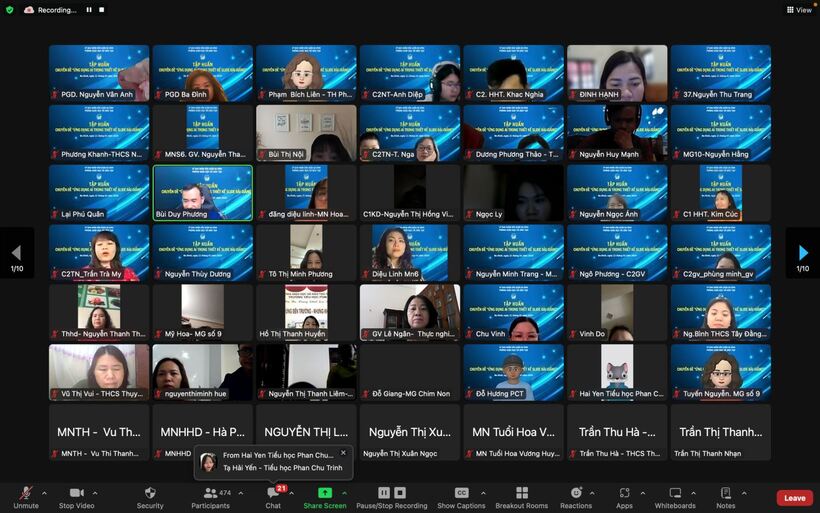 Sáng ngày 21/01, các cô giáo trường Mẫu giáo Chim Non đã tích cực tham gia buổi tập huấn chuyên đề “Ứng dụng AI trong thiết kế slide bài giảng” cùng với gần 900 thầy cô giáo tại các trường MN, TH, THCS của quận Ba Đình do Phòng GDĐT quận Ba Đình tổ chức qua nền tảng Zoom với thầy giáo Bùi Duy Phương - Chuyên gia công nghệ giáo dục.