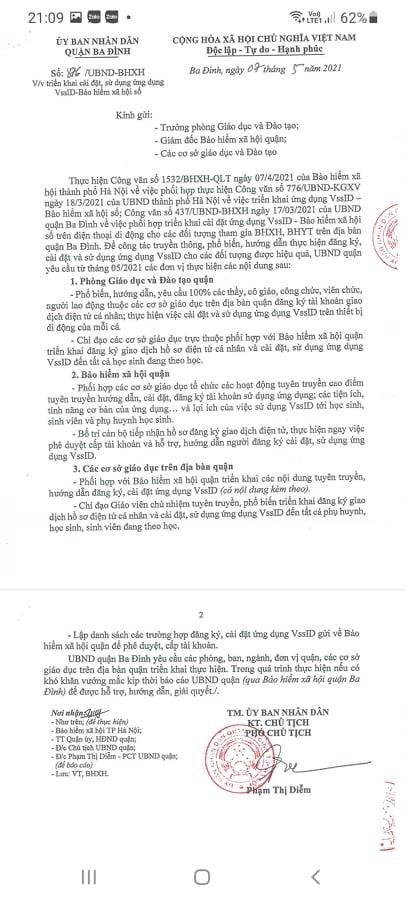 Thực hiện Công văn số 876/UBND-BHXH ngày 07/5/2021 của UBND quận Ba Đình về việc triển khai cài đặt ứng dụng VssID-Bảo hiểm xã hội số trên điạ bàn quận, trường Mẫu giáo Chim Non kính đề nghị phụ huynh thực hiện theo hướng dẫn dưới đây để cài đặt ứng dụng Bảo hiểm xã hội số, đảm bảo quyền lợi bảo hiểm cho con em mình.