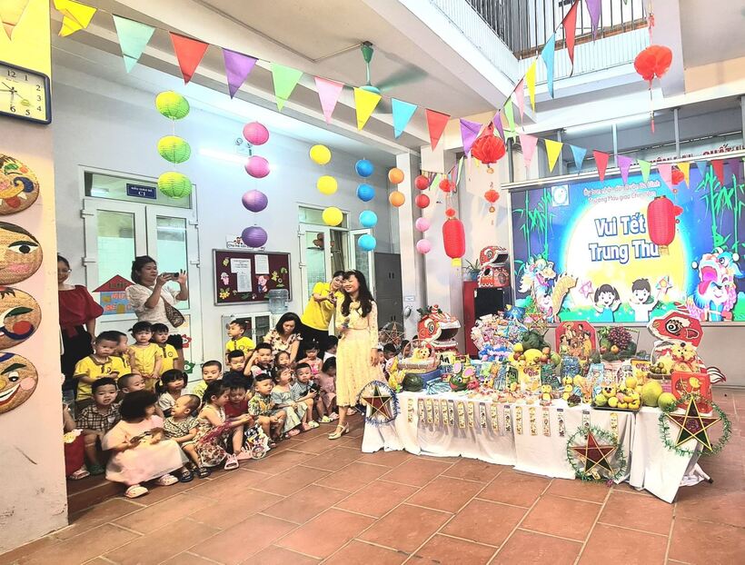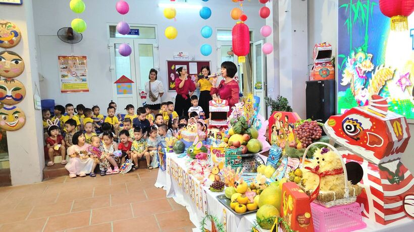 Một năm học bắt đầu với tình yêu thương, sự quan tâm của cả gia đình và nhà trường, các cô bác đã biến hóa những quả bưởi, dưa, táo, lê... thành những con vật ngộ nghĩnh đáng yêu. Ngày Tết Trung thu không thể thiếu được những chiếc bánh dẻo bánh nướng, thơm phức được bày biện đẹp mắt, những chiếc đèn lồng, đèn ông sao nhấp nháy được các con tự tay trang trí vô cùng đẹp mắt và ấn tượng. Tất cả như một bức tranh muôn màu trong ngày Rằm tháng 8. Một mâm cỗ rực rỡ, lung linh và tràn đầy sự ấm áp, đoàn viên đúng ý nghĩa ngày Tết Trung Thu.