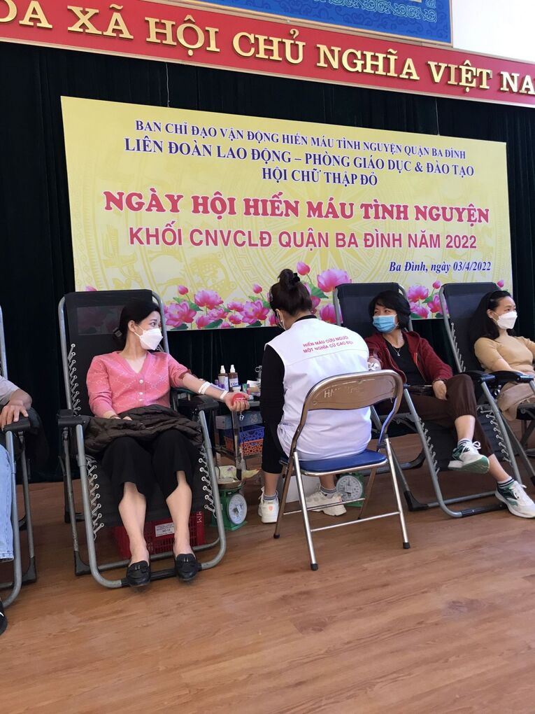 Tại trường Tiểu học Hoàng Hoa Thám, sáng ngày 03/04/2022 các công đoàn viên của Trường Mẫu giáo Chim Non đã chủ động đăng kí tham gia hiến máu thể hiện ý thức công dân, tấm lòng nhân đạo, góp phần lan tỏa ý nghĩa của việc hiến máu cứu người, làm cho phong trào hiến máu của Quận Ba Đình phát triển ngày càng bền vững.