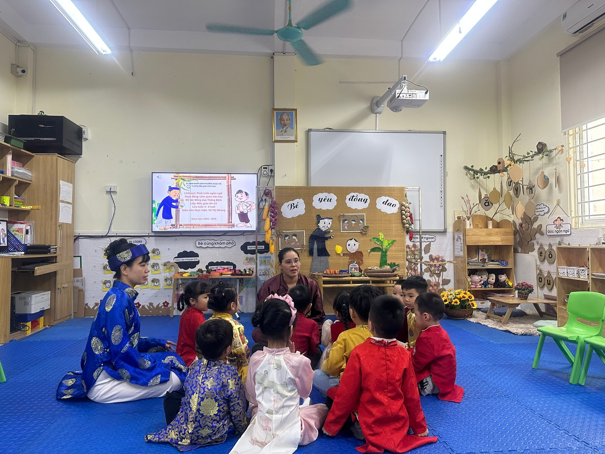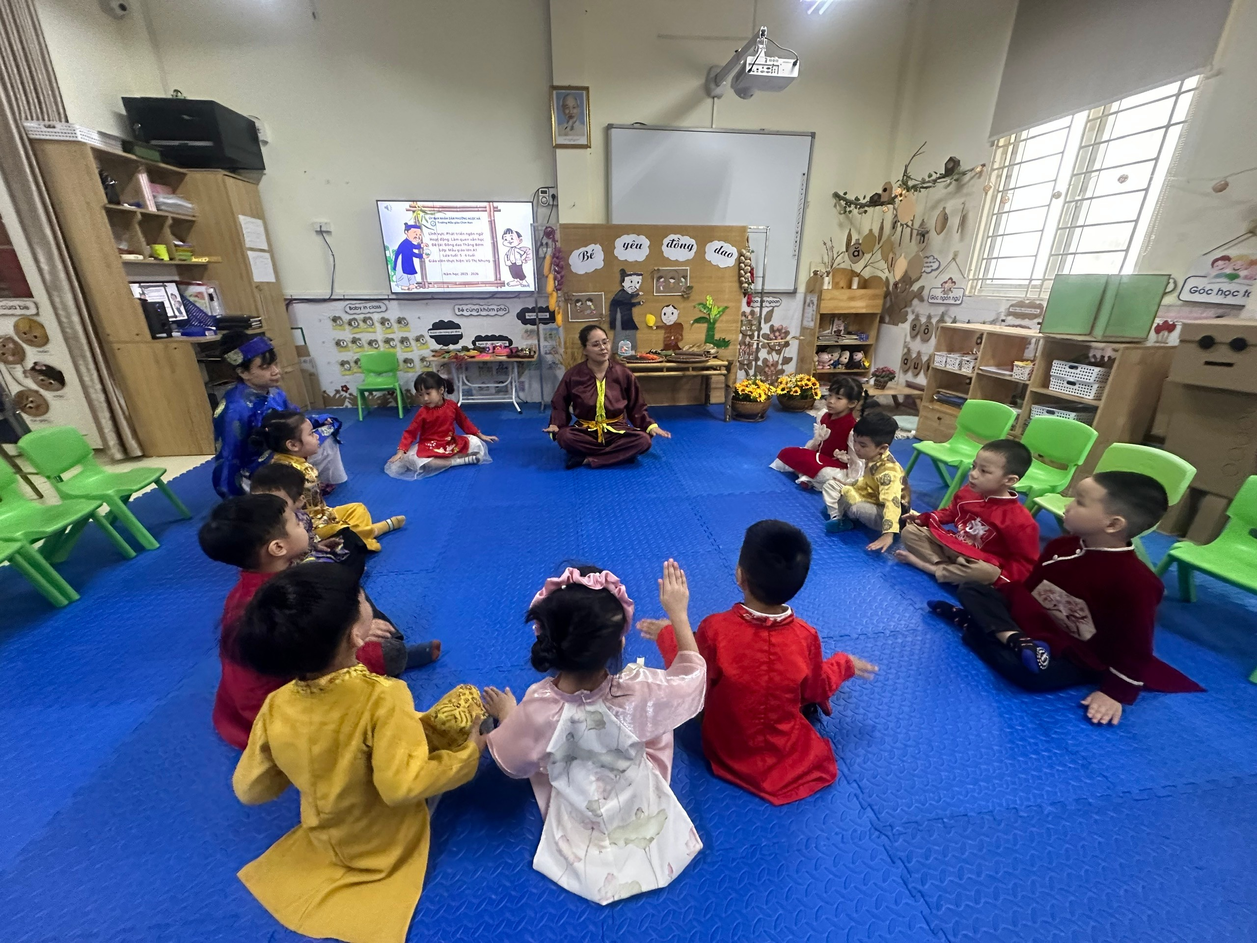 Hưởng ứng phong trào thi đua lập thành tích chào mừng Ngày Nhà Giáo Việt Nam 20/11, lớp Mẫu giáo lớn A1 đã tham gia hội giảng với bài đồng dao “Thằng Bờm” sáng tạo và đầy ý nghĩa.