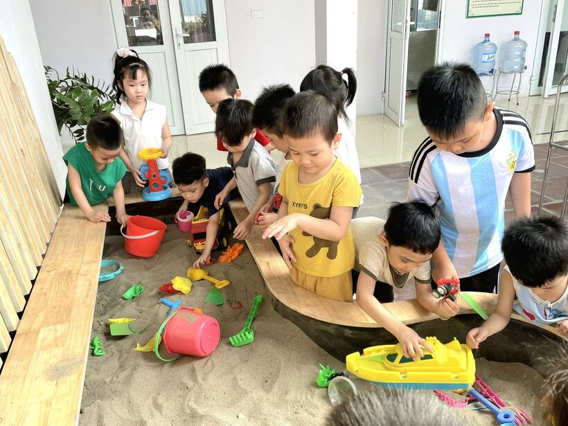 Một số hình ảnh trẻ chơi cát tại trường Mẫu giáo Chim Non: