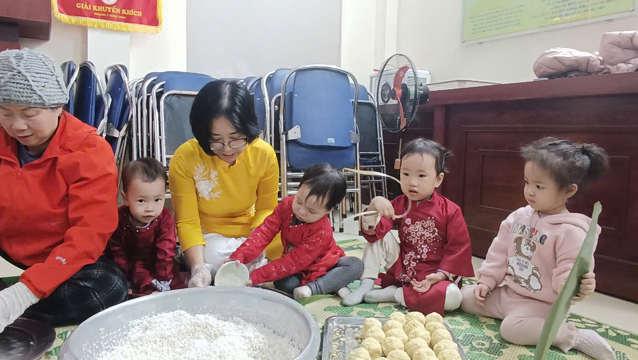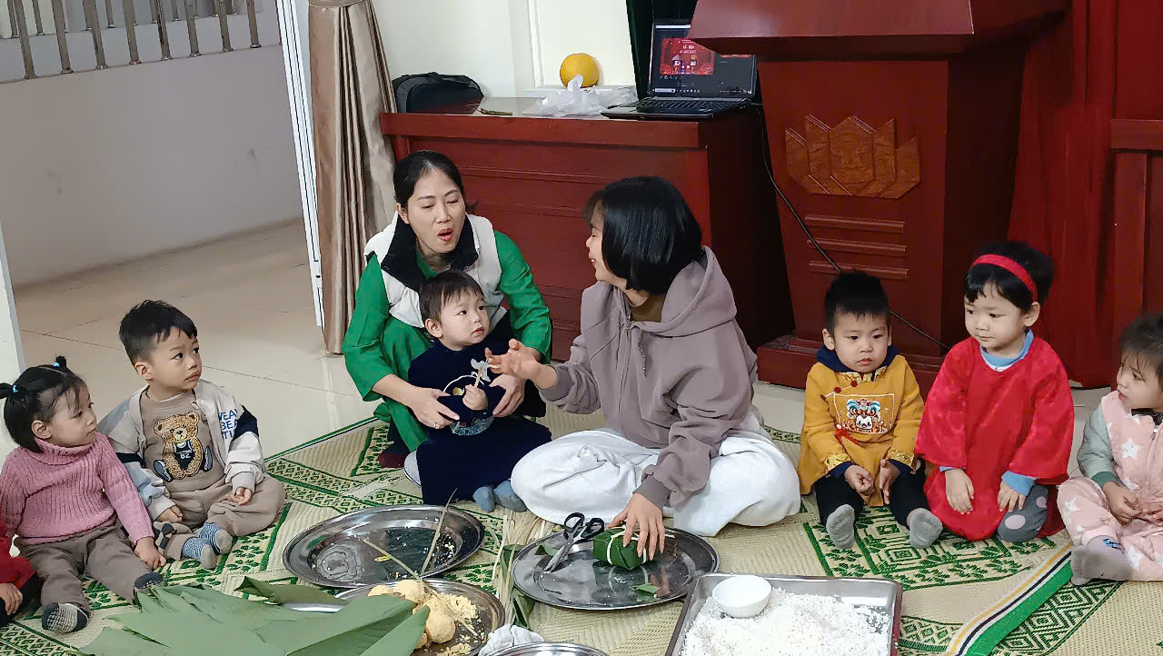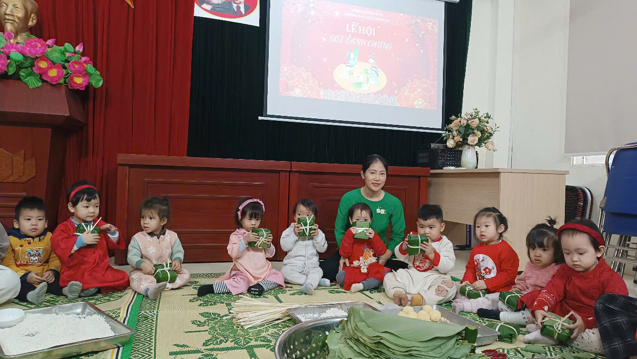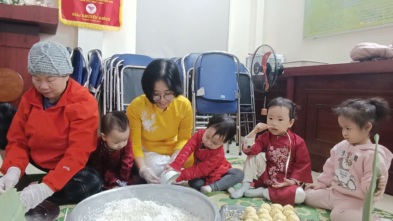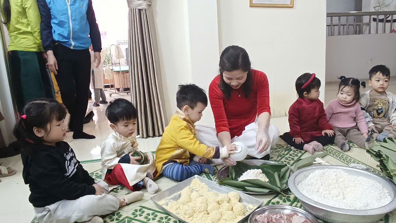 Trong không khí khấp khởi chờ đợi năm mới Ất Tỵ, trường Mẫu giáo Chim Non, quận Ba Đình đã tổ chức hoạt động trải nghiệm: Gói bánh chưng ngày Tết.