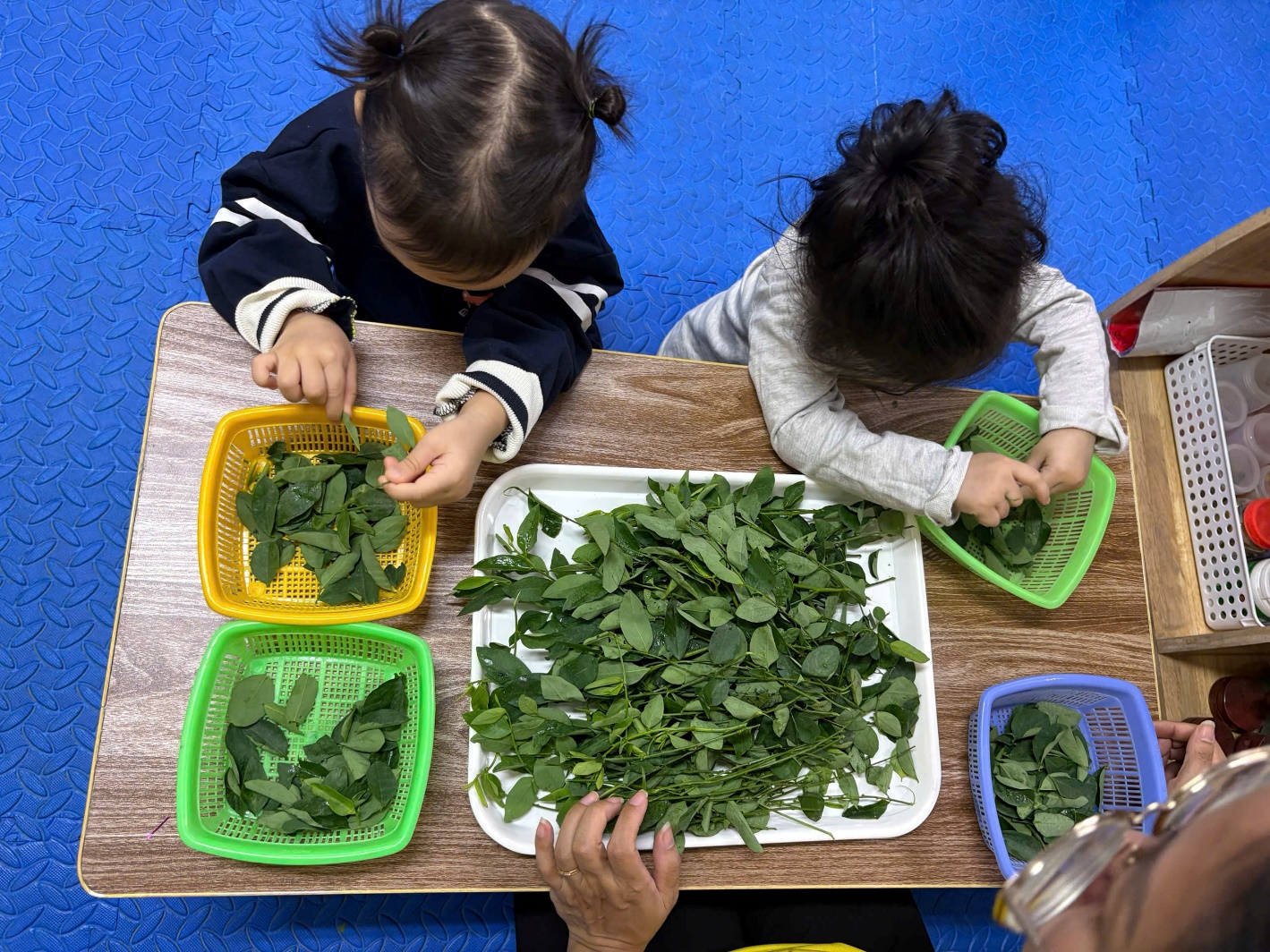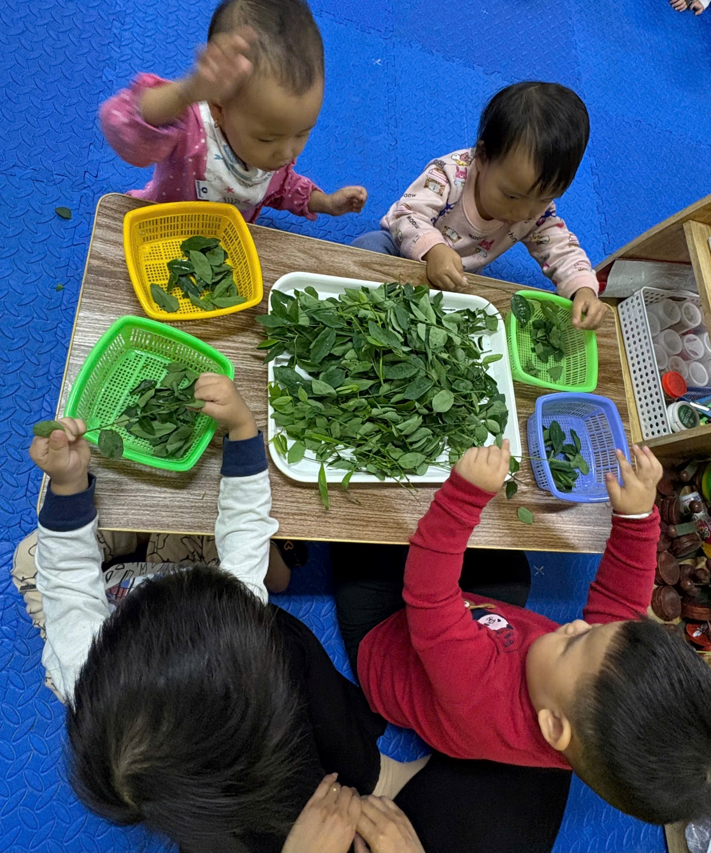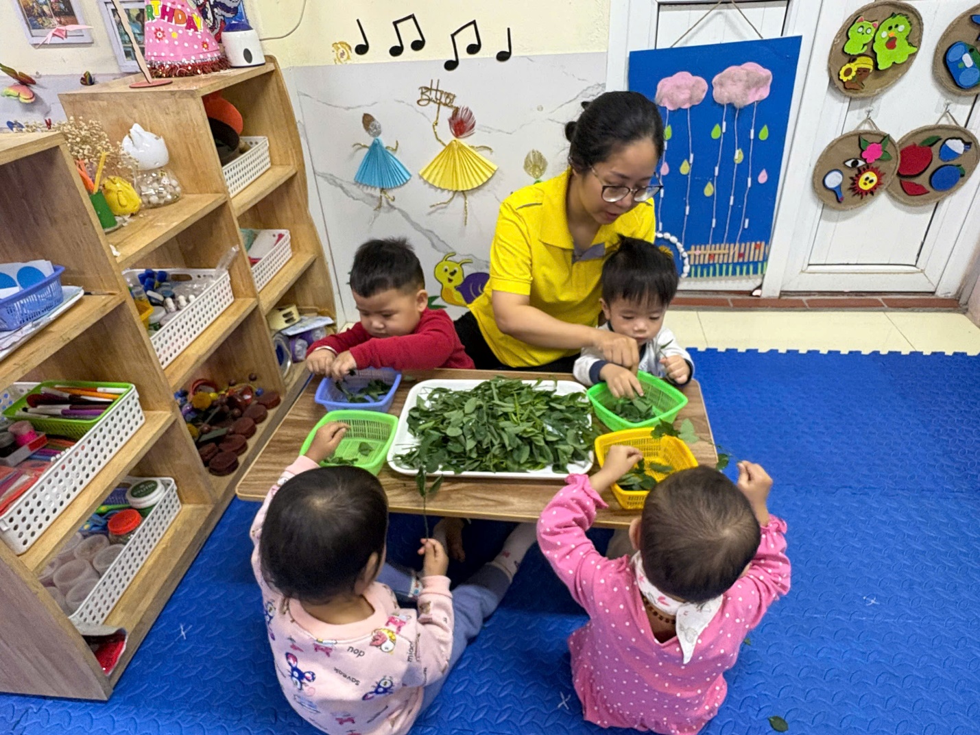 Đó là một cách tuyệt vời để dạy các bé về thực phẩm mà bé ăn hàng ngày. Từ hoạt động này, các bé sẽ hiểu được ý nghĩa của sự lao động, tận hưởng được cảm giác tự hào khi tự tay góp phần làm được một món ăn nào đó, được giao lưu với bạn bè, được vui chơi… Hoạt động Tuốt rau ngót được các con lớp nhà trẻ D rất hào hứng và thích thú.