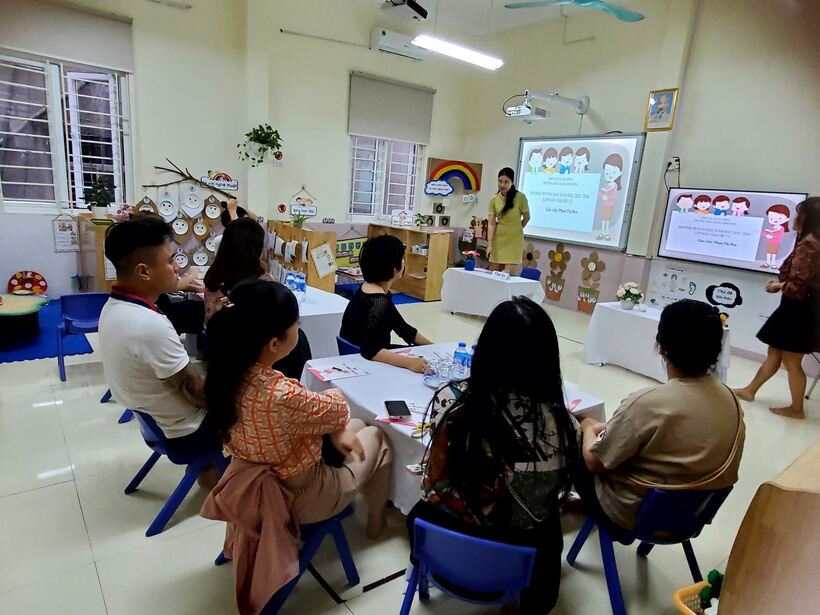 Giáo viên các lớp đã báo cáo kế hoạch hoạt động nuôi dưỡng, chăm sóc, giáo dục trẻ tới phụ huynh. Tại cuộc họp, GVCN lớp đã thông báo những thành tích nổi bật mà nhà trường đã đạt được trong năm học 2022-2023 và phương hướng phấn đấu trong năm học 2023-2024. Đặc biệt, các bậc phụ huynh đã được nghe GVCN trao đổi về đặc điểm tình hình lớp học, nhận xét về các mặt của các con học sinh, hướng dẫn phụ huynh học sinh cách kèm cặp con tại nhà để các con có tâm thế tốt nhất khi học tại lớp. Giáo viên cũng thông báo tới các vị phụ huynh trong lớp về một số nội quy của trường, của lớp.