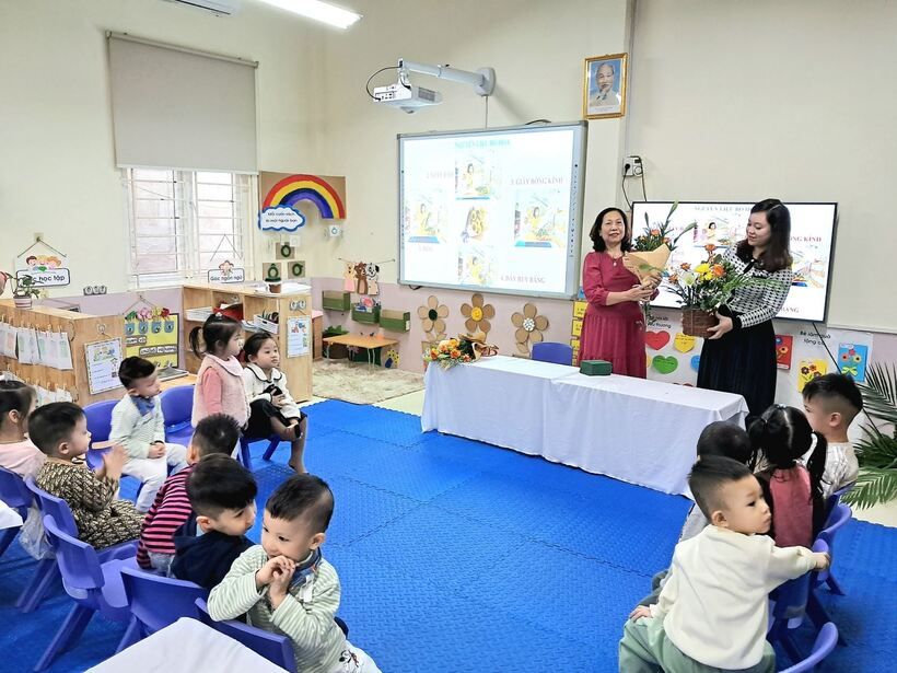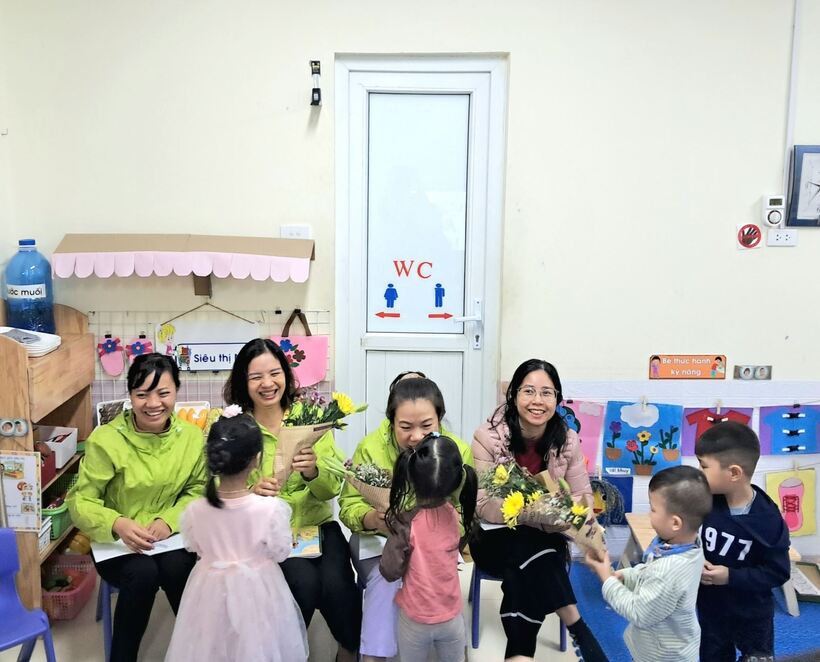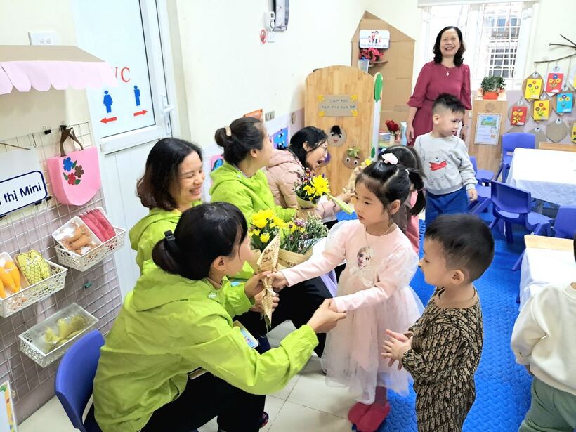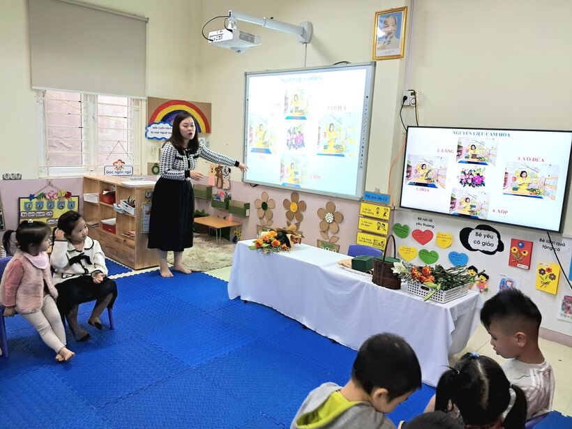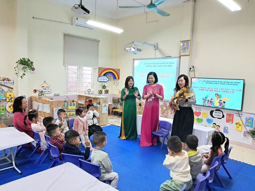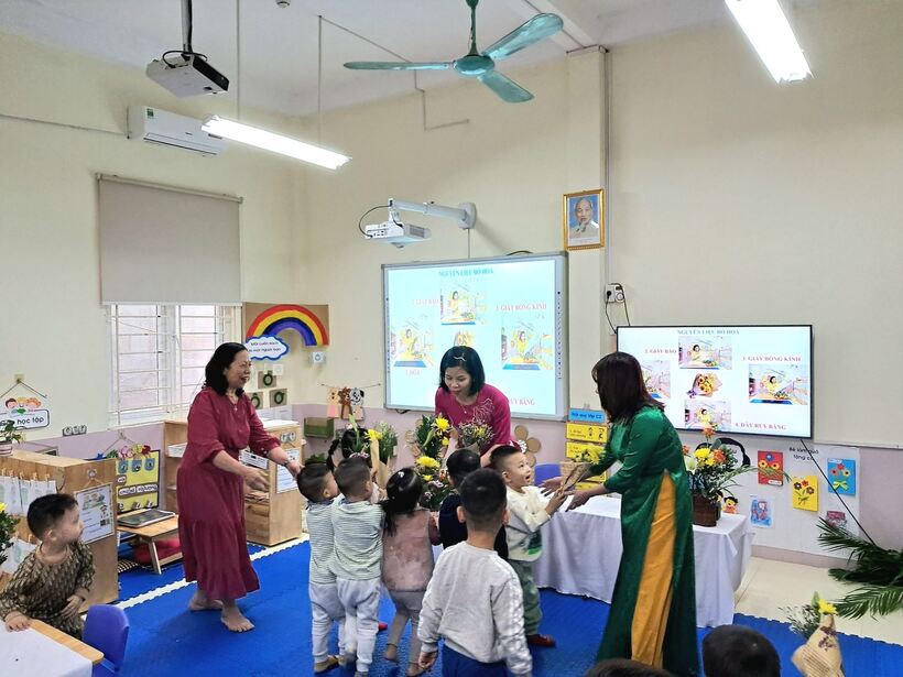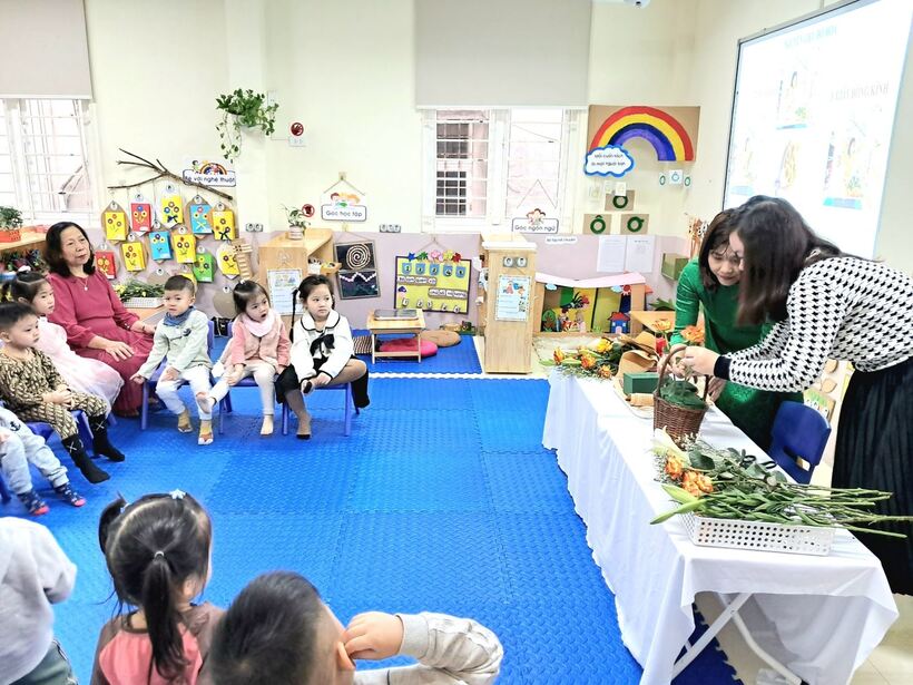 Để chào mừng kỷ niệm 41 năm ngày Nhà giáo Việt Nam 20/11, sáng nay 16/11, lớp MG bé C2 đã tổ chức hoạt động kết nối với phụ huynh "Cắm hoa nghệ thuật tặng cô giáo". Đây là dịp đặc biệt để mẹ bạn Ngọc Bảo và bà bạn Minh Thư có thể trổ tài cắm hoa, bó hoa nghệ thuật và hướng dẫn các bạn nhỏ C2 tạo nên những chậu hoa, bình hoa, bó hoa xinh xắn tặng cô.