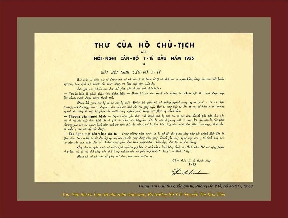 Thư của Chủ tịch Hồ Chí Minh gửi cán bộ ngành Y tế năm 1955.
