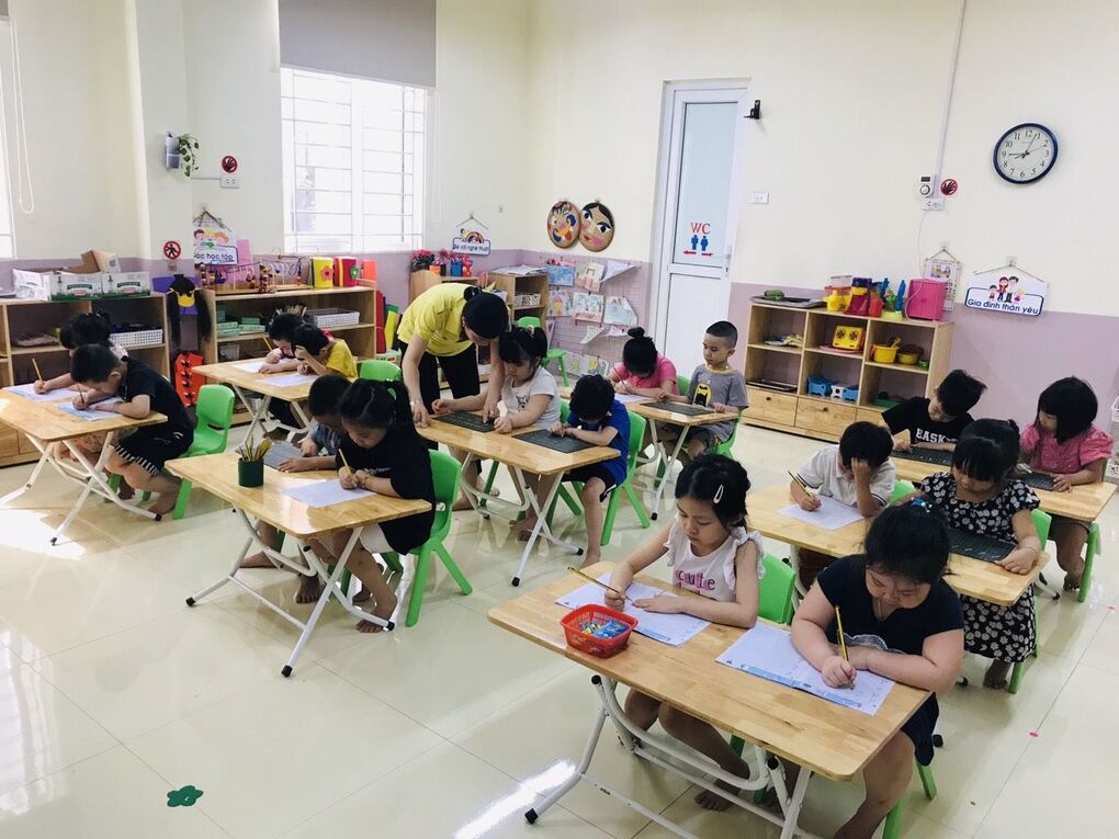 Một số hình ảnh các con được luyện kỹ năng tiền tiểu học tại trường Mẫu giáo Chim Non :