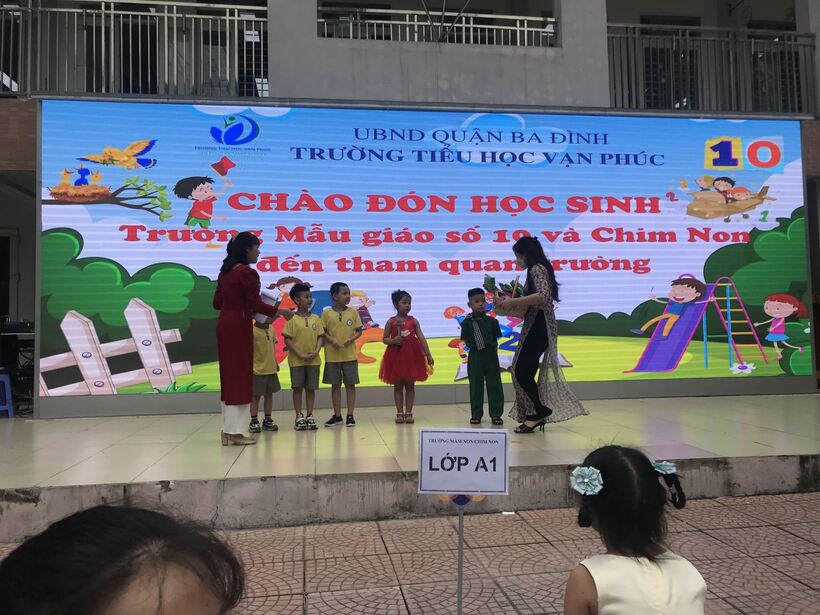 Các con học sinh và cô giáo trường Mẫu giáo Chim Non đã được các cô và các anh chị lớp 1 của trường Tiểu học Vạn Phúc nhiệt liệt chào mừng bằng tiếng vỗ tay, bằng những lá cờ, những đóa hoa tươi thắm. Không khí vui tươi phấn khởi tràn ngập sân trường. Mở đầu chương trình Các bé yêu trường Mẫu giáo Chim Non được tham gia liên hoan văn nghệ với trường Mẫu giáo số 10 và trường Tiểu học Vạn Phúc. Các tiết mục diễn ra vô cùng đặc sắc và hấp dẫn. Các con học sinh được tham gia trò chơi, biểu diễn trực tiếp trên sân khấu để nhận về những phần quà thú vị. Ban giám hiệu trường Tiểu học Vạn Phúc và đồng chí phó chủ tịch UBND Phường Kim đã tận tay trao cho các bé những món quà lưu niệm đầy ý nghĩa. Phụ huynh và các con được các cô giáo lớp 1 dẫn đi tham quan các lớp học, các phòng chức năng : phòng đàn, thư viện, phòng máy tính, phòng học ngoại ngữ với các thiết bị phương tiện hỗ trợ dạy học hiện đại... Cơ sở vật chất hiện đại đồng bộ cùng với đội ngũ dày dặn kinh nghiệm, năng lực chuyên môn, tình yêu với con trẻ, trách nhiệm với nghề đã tạo nên một ngôi trường chất lượng có tên Vạn Phúc. Vượt qua nhiều khó khăn vất vả, trường Tiểu học Vạn Phúc ngày nay đã từng bước phát triển mạnh mẽ cả về cơ sở vật chất và chất lượng giảng dạy. Đến với trường Tiểu học vạn Phúc hôm nay, các con học sinh trường mẫu giáo Chim Non mong muốn một ngày gần nhất sẽ được học tập và vui chơi tại mái trường này.