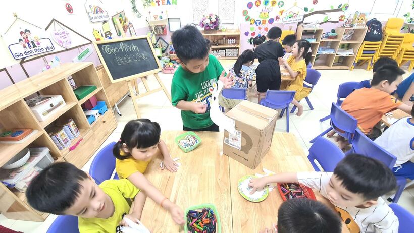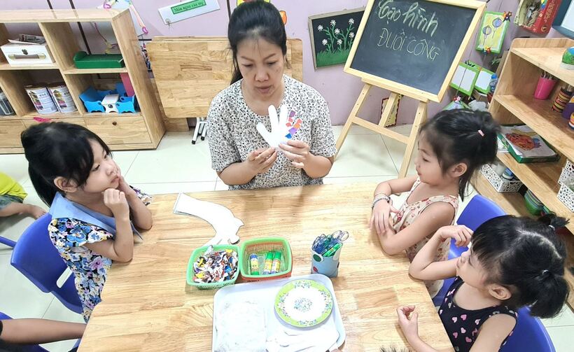 Hôm nay, ngày 29/6, các bạn lớp Mẫu giáo Trường Chim Non rất hồ hởi với hoạt động "Trang trí đuôi con công" mà cô giáo đưa ra. Các bố mẹ và người thân cùng tìm hiểu điều gì hấp dẫn trẻ từ hoạt động này nhé