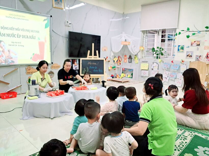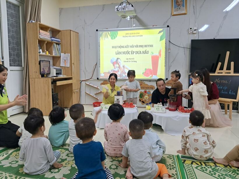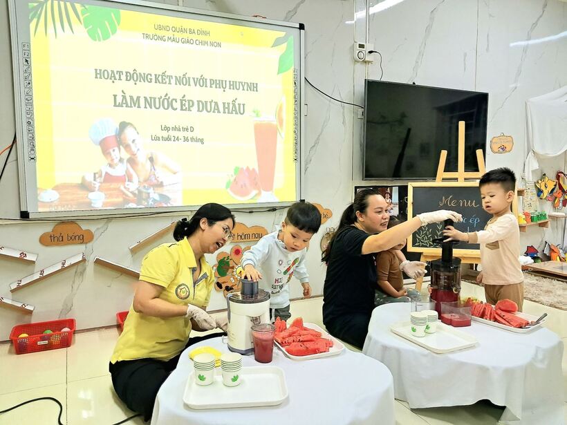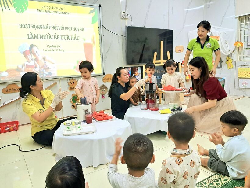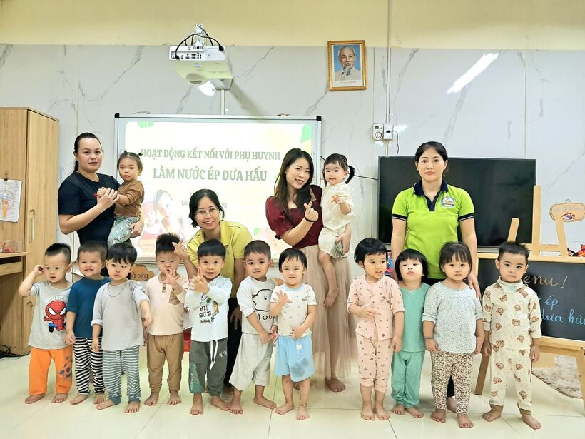 Sáng nay, thứ tư ngày 08/11, lớp Nhà trẻ D đã tổ chức thành công Hoạt động kết nối với Phụ huynh trong công tác CSGD trẻ thông qua hoạt động "Làm nước ép dưa hấu". Còn rất nhiều các hoạt động khác đang chờ đón các bố mẹ tham gia cùng các con !
