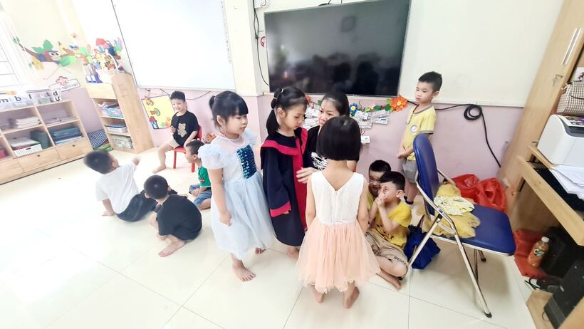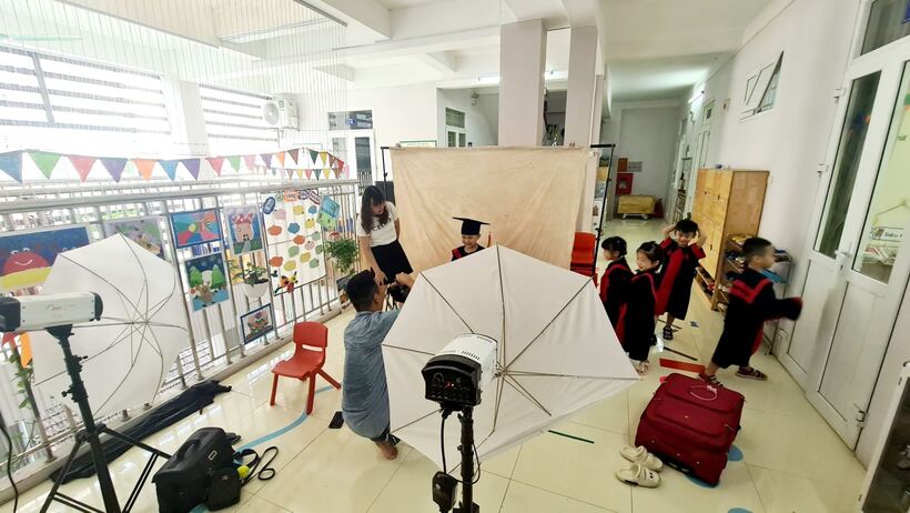 Hình ảnh các bé lớp MGL A1 đang chụp ảnh tốt nghiệp trường MG Chim Non