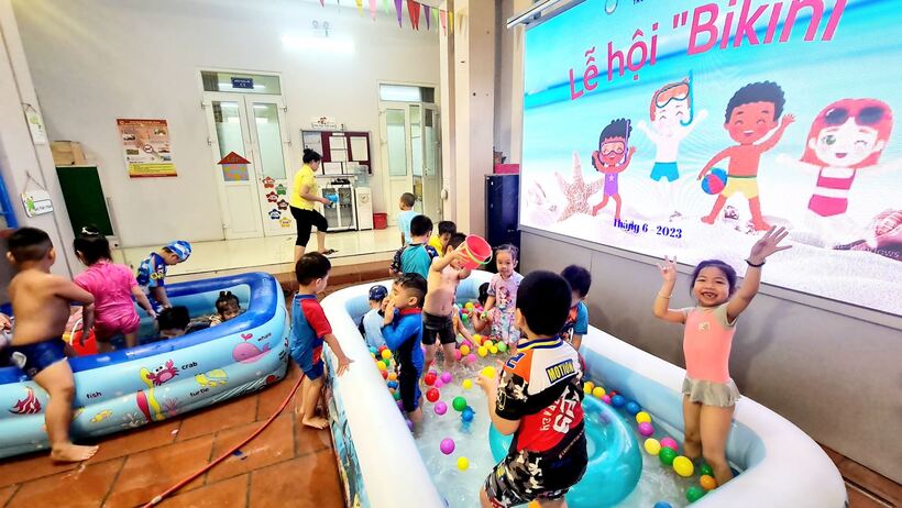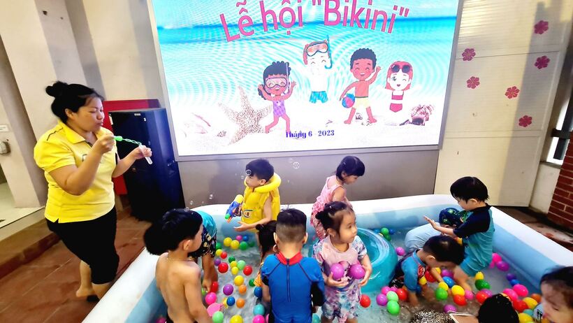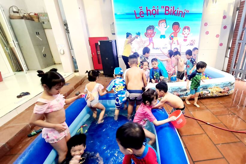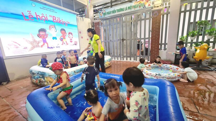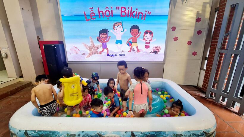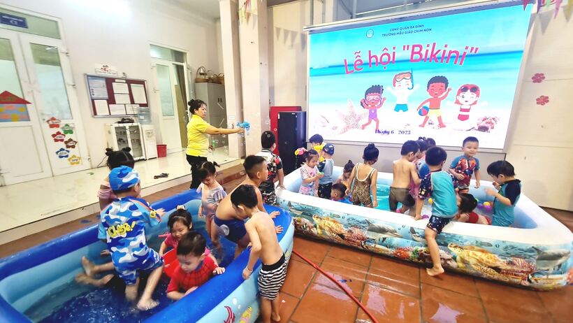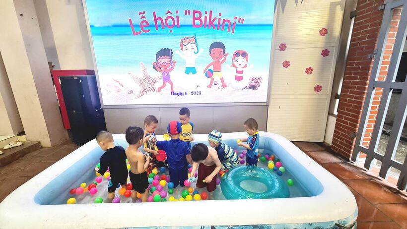 Sáng nay, lễ hội "Bikini" đã diễn ra vô cùng sôi động, hấp dẫn đối với các bé trường mẫu giáo Chim Non