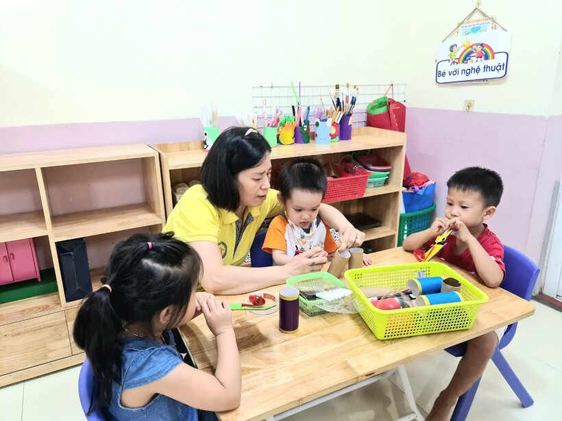 Các cô dạy con để các con có được kỹ năng, kiến thức, tham gia mọi hoạt động tập thể của lớp. Các bạn nhỏ đã biết chơi cùng nhau, nhường nhịn đồ chơi với bạn, cùng nhau chơi và làm đồ chơi với cô.