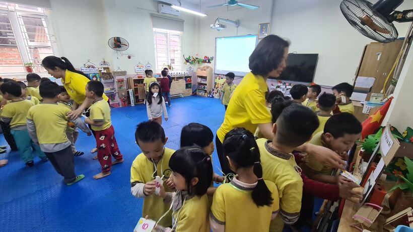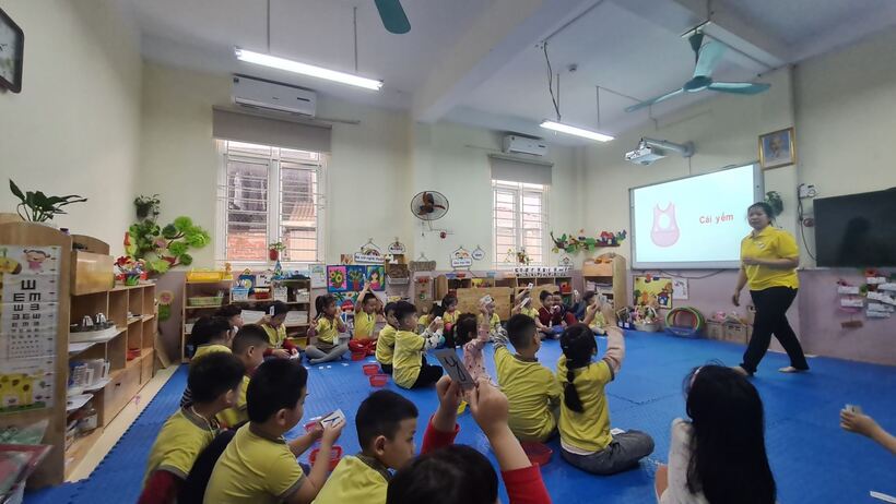 Giáo viên lớp Mẫu giáo lớn A1 đã tổ chức các trò chơi chữ cái phong phú, đan xen động tĩnh tạo ra sự hứng thú, tích cực tham gia của tất cả các bạn nhỏ. Thông qua các hoạt động trò chơi với chữ cái này, các con được vui chơi, tăng cường kiến thức, kỹ năng, nhận biết được chữ cái qua các nguồn khác nhau xung quanh trẻ, tạo ra chữ cái bằng nhiều cách...