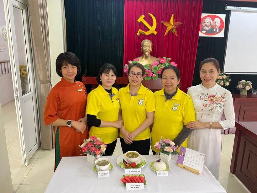 Bữa ăn sắc màu chào mừng ngày Quốc tế phụ nữ 8/3. Tổ nuôi dưỡng trường Mẫu giáo Chim Non đã xây dựng thực đơn với rất nhiều món ăn hấp dẫn và bổ dưỡng, trong đó có món mới là "Bò hầm củ cải"