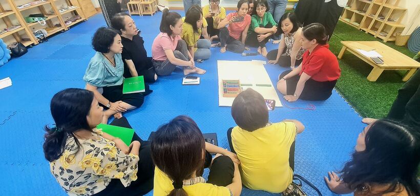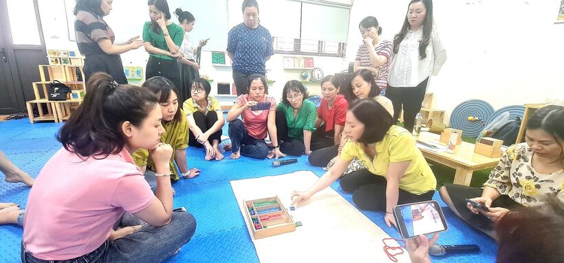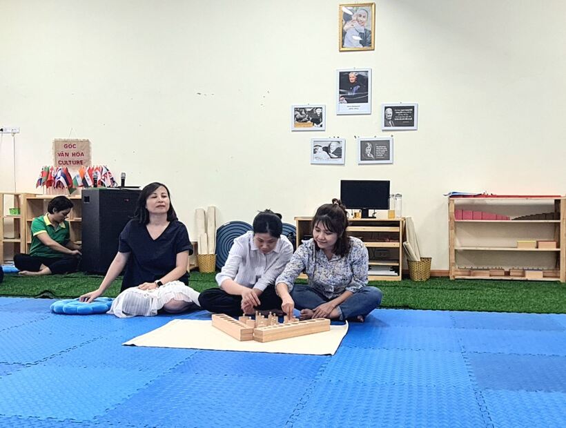 Trong 2 ngày 14,15/8, cán bộ, giáo viên trường Mẫu giáo Chim Non quận Ba Đình tích cực tham gia bồi dưỡng chuyên đề ứng dụng phương pháp Montessori trong giáo dục mầm non. Giảng viên là cô Lê Thanh Hải -Thạc sỹ, giảng viên chính trường Cao đẳng sư phạm Trung Ương