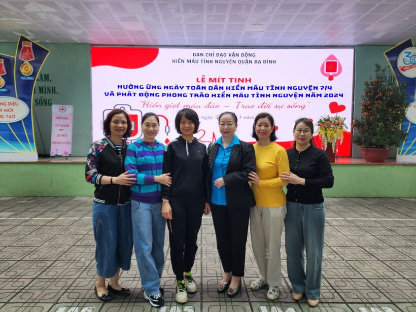 Thực hiện quyết định sô 43/QĐ – BCĐ ngày 05/01/2024 về phong trào Hiến máu nhân đạo do Liên đoàn lao động - Phòng giáo dục quận Ba Đình phát động, sáng nay, 23/3 các đồng chí trong ban giám hiệu, giáo viên và nhân viên trường Mẫu giáo Chim Non đã tham gia hiến máu nhân đạo với tinh thần tự nguyện, nêu cao truyền thống tương thân tương ái của dân tộc, học tập theo lời dạy của Bác "Một việc làm tốt bằng vạn bài diễn văn hay”.