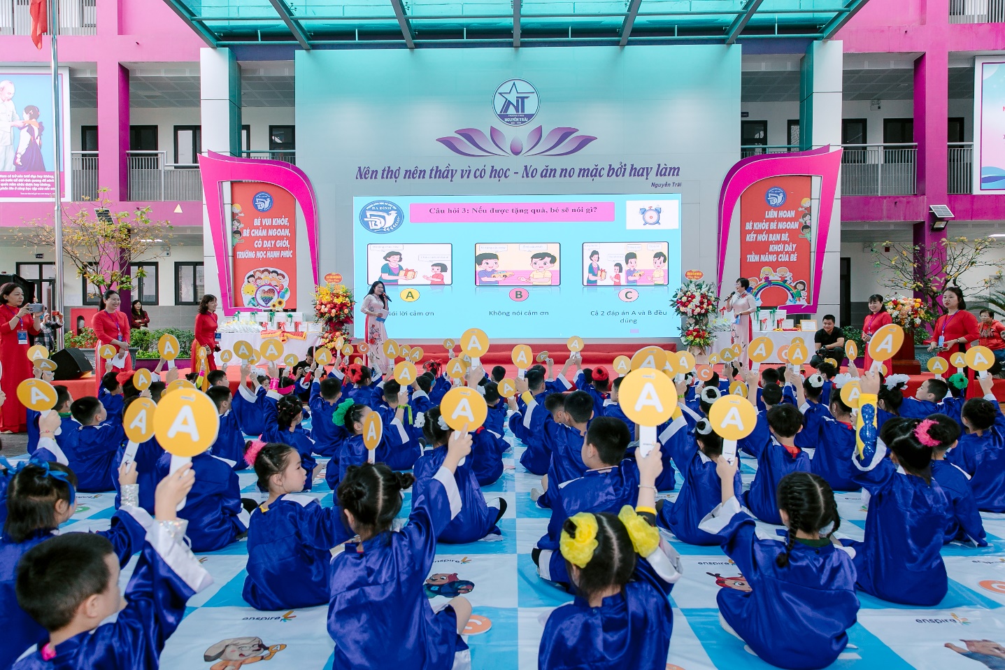 Tại sự kiện, các bé đã sôi nổi tranh tài ở trò chơi “Rung chuông vàng”; đồng diễn các bài Aerobic, thể dục nhịp điệu.