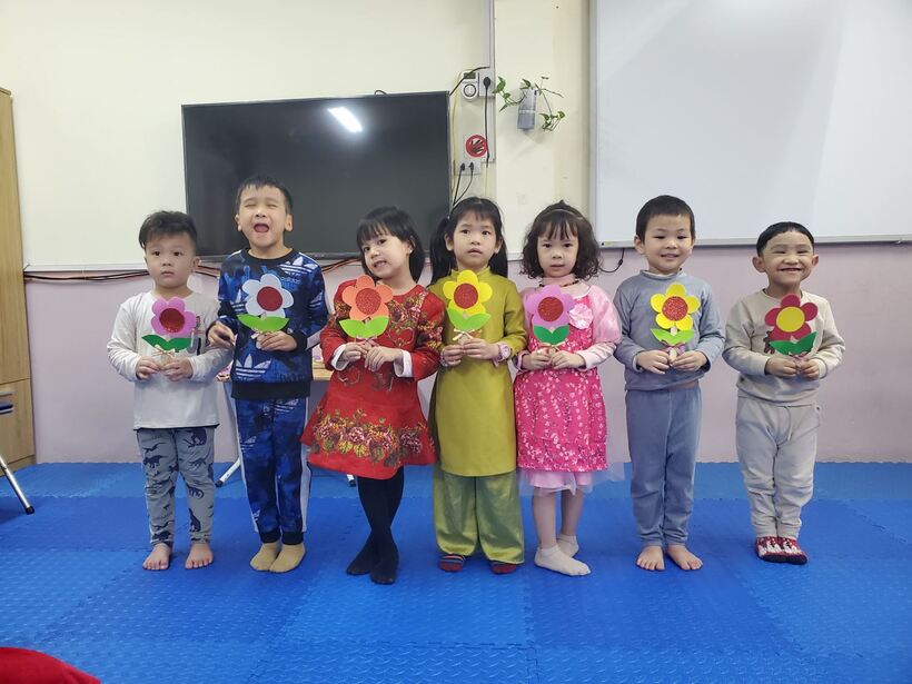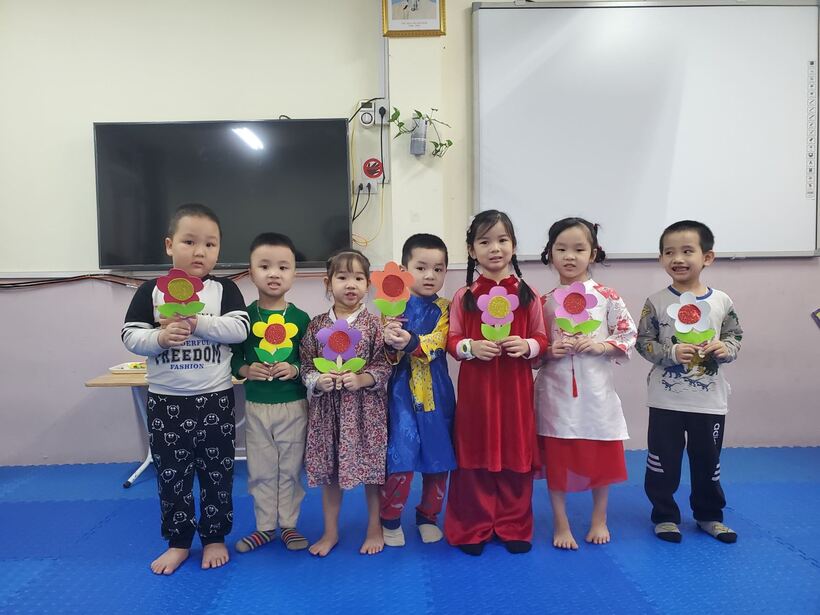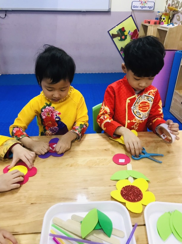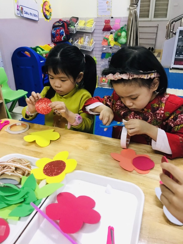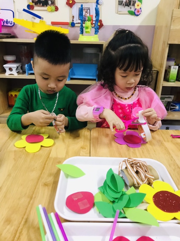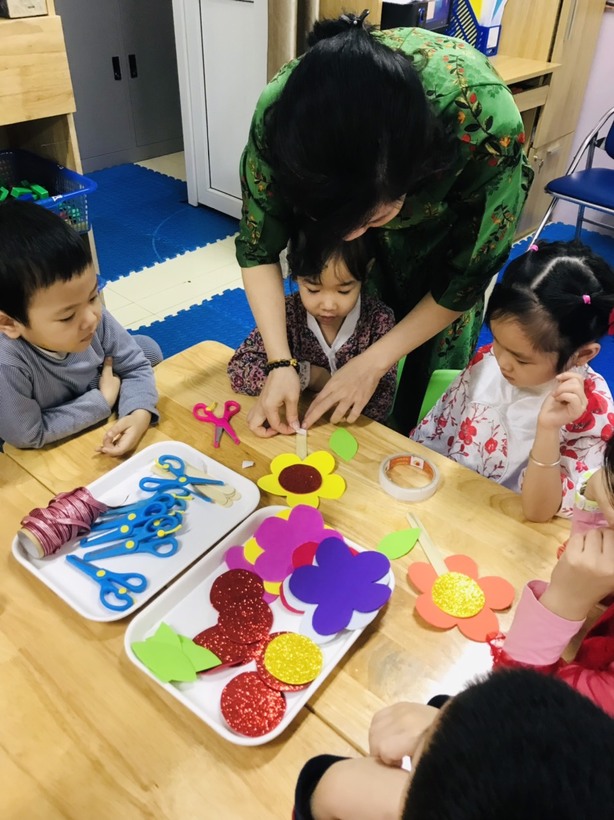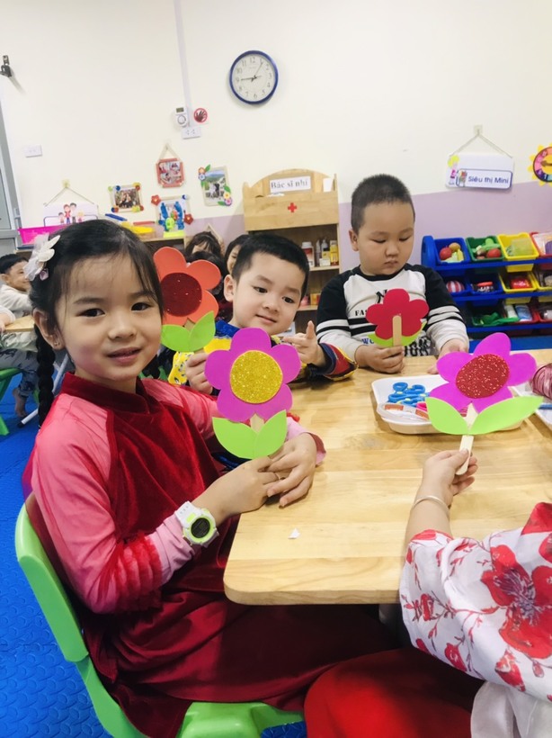 Các bạn nhỏ lớp mẫu giáo nhỡ B1 đã được cáchướng dẫn để tạo ra những bông hoa nhỏ xinh đẹp để tặng , tặng mẹ nhân ngày Quốc tế phụ nữ.