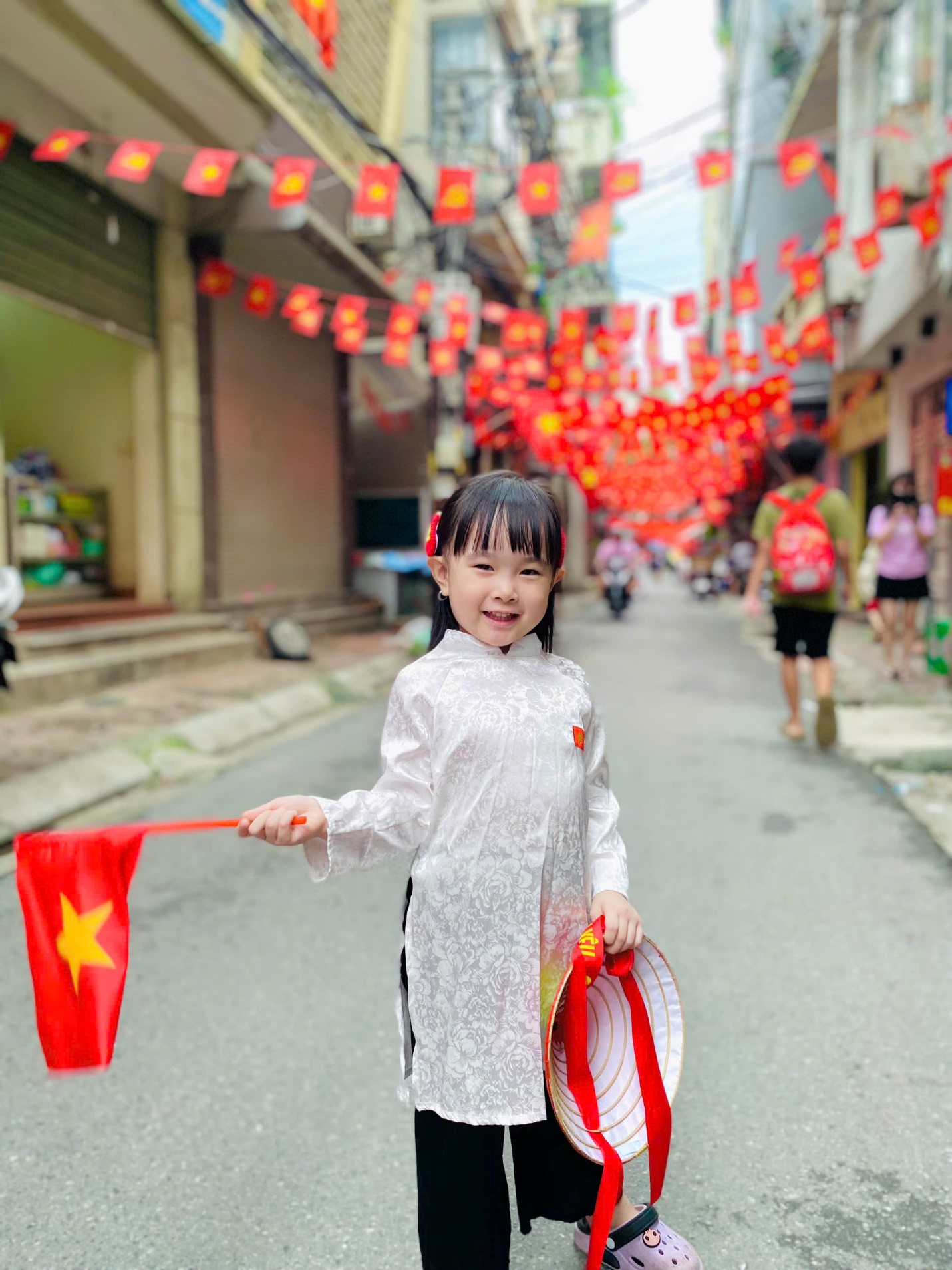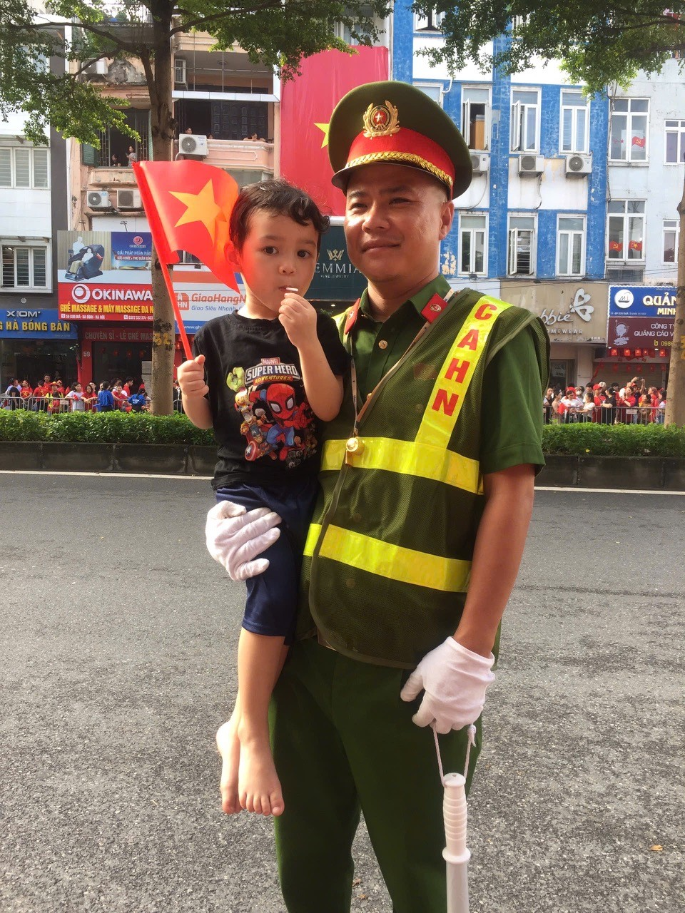 Qua những bức ảnh phụ huynh gửi về, ta thấy rạng rỡ trên gương mặt các con là nụ cười trong sáng, ánh mắt hồn nhiên khi cùng bố mẹ, ông bà hòa mình trong không khí tưng bừng cờ hoa của Thủ đô Hà Nội. Có bé được bố mẹ đưa đi viếng lăng Bác, ngắm quảng trường Ba Đình lịch sử; có bé được đến thăm di tích, bảo tàng; có bé được bố mẹ đưa đi xem diễu binh, diễu hành; có bé được bố mẹ đưa đi dạo phố ngắm cờ hoa... Tất cả đều toát lên niềm tự hào, niềm vui trong ngày hội non sông.