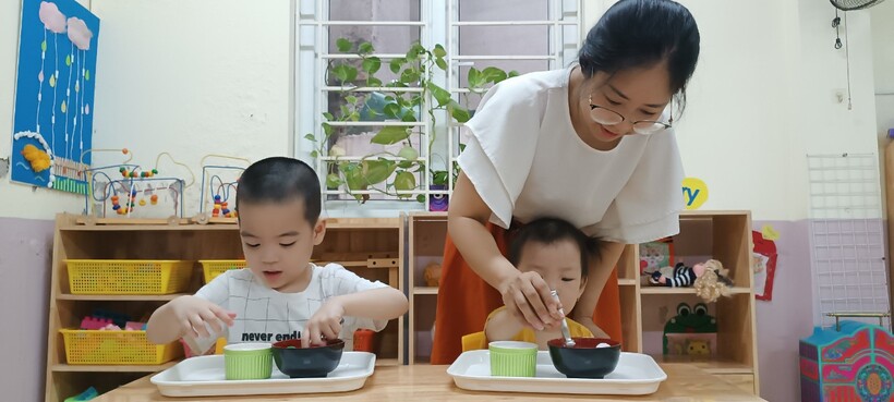 Bà Maria Montessori có một câu nói nổi tiếng là: "Đôi bàn tay là công cụ của trí thông minh loài người", vì thế phương pháp montessori rất chú trọng đến các hoạt động trải nghiệm và khám phá thế giới qua đôi bàn tay. Trẻ sẽ dùng đôi bàn tay của mình để khám phá, cảm nhận, thực hành cuộc sống liên tục với các hoạt động đa giác quan phong phú và vô cùng thú vị. Bởi vì "đôi tay làm cái gì thì tâm trí khắc ghi cái đó", nên một đôi bàn tay bận rộn chính là hình ảnh của một trí não đang phát triển mạnh mẽ và hoàn thiện.
