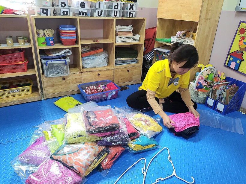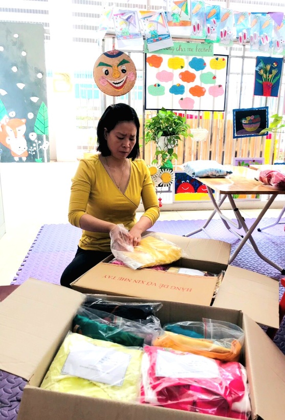 Bên cạnh đó, Công đoàn nhà trường cũng đã vận động công đoàn viên, những người thân quen, phụ huynh cùng chung tay ủng hộ đóng góp những bộ áo dài chưa sử dụng hoặc giá trị sử dụng còn trên 70%. Tự tay các đồng chí đoàn viên lựa chọn, giặt là, ghi rõ thông số, đóng gói cẩn thận từng bộ. Đồng chí chủ tịch công đoàn đã đem trao tận tay đồng chí đại diện Ban thường vụ Liên đoàn lao động Quận Ba Đình.