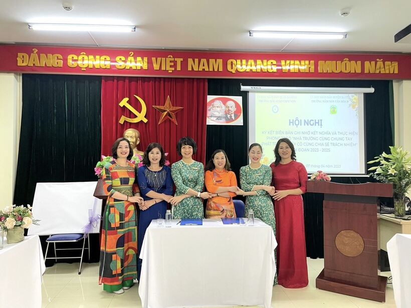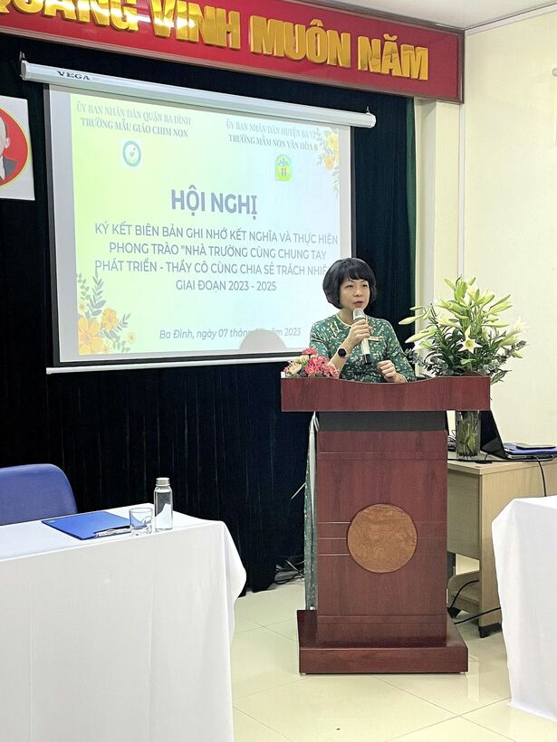 Trường Mẫu giáo Chim Non Ba Đình và trường Mầm non Vân Hòa B- Ba Vì tổ chức thành công Hội nghị Ký kết biên bản ghi nhớ kết nghĩa và thực hiện chương trình “Nhà trường cùng chung tay phát triển -Thầy cô cùng chia sẻ trách nhiệm" giai đoạn 2023- 2025