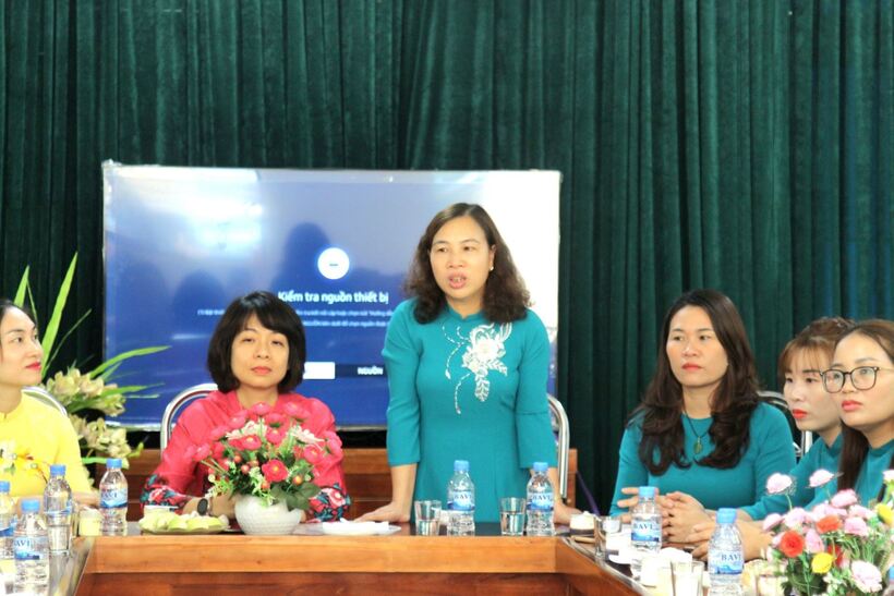 Đồng chí Lê Thị Hồng Kết -Hiệu trưởng trường MN Vân Hòa B phát biểu trong buổi gặp mặt