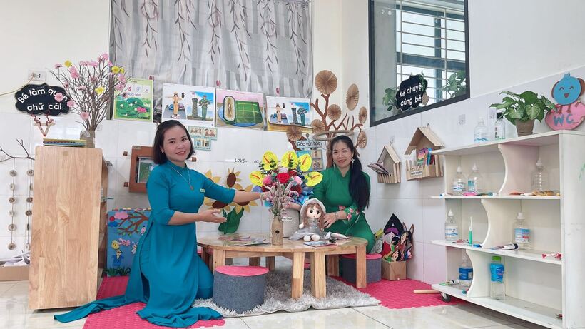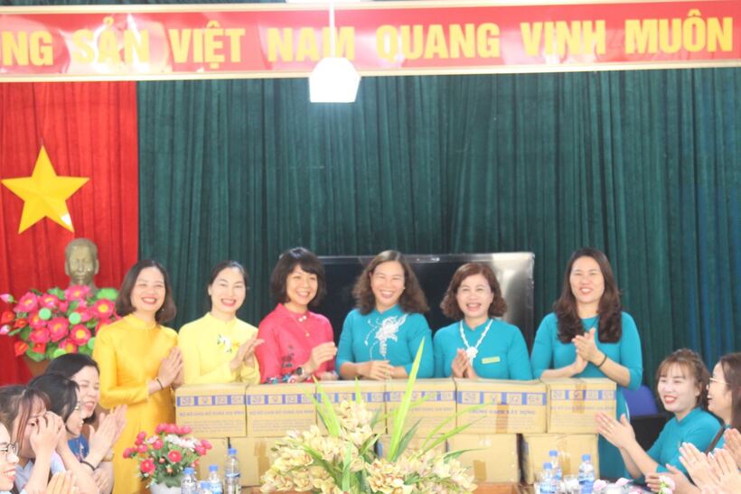 Trường Mẫu giáo Chim Non trao tặng quà kỷ niệm buổi gặp gỡ giao lưu cho trường MN Vân Hòa B