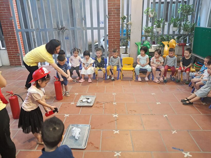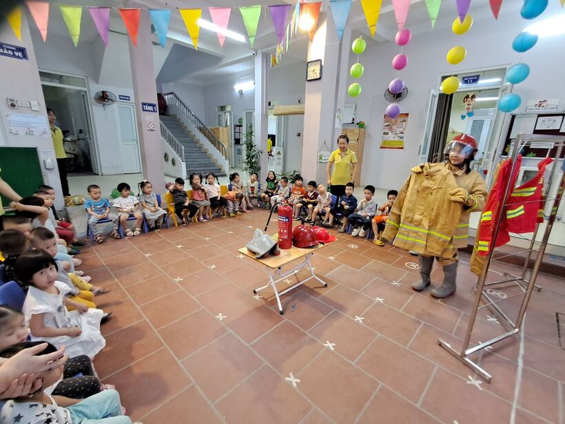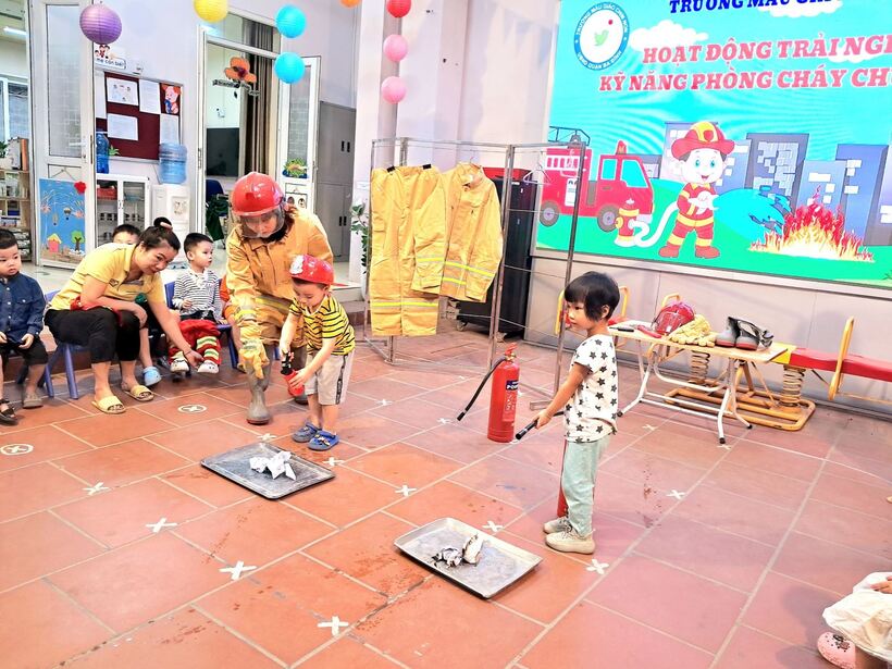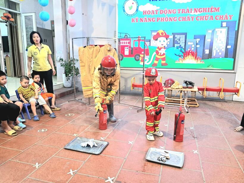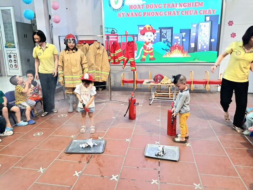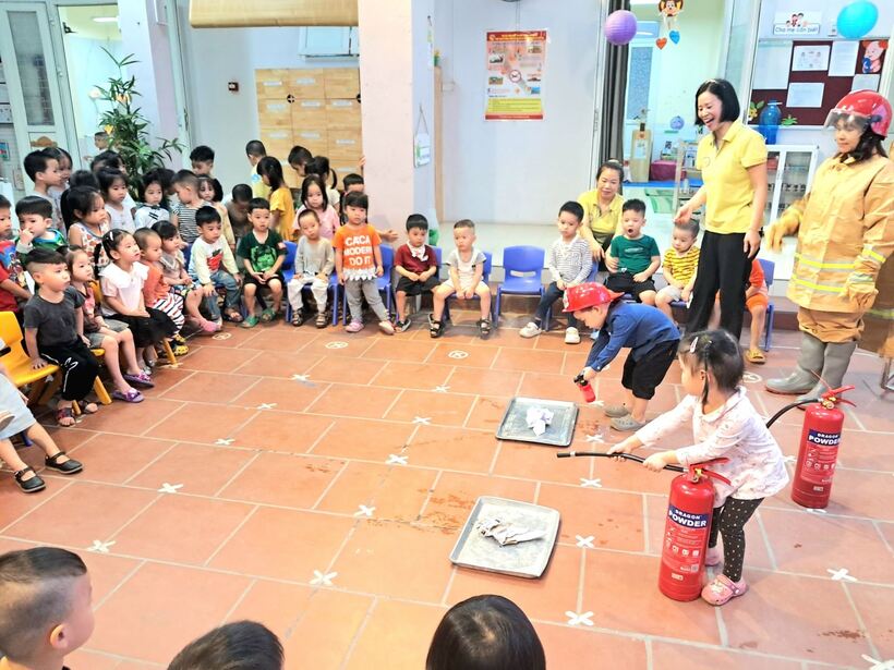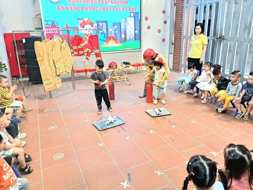 Mục đích chính của việc trang bị kỹ năng phòng chống hỏa hoạn trong chương trình giáo dục mầm non này là giúp trẻ nhận biết những mối nguy hiểm tiềm tàng xung quanh, nhận biết các nguyên nhân gây ra hỏa hoạn và cách phòng tránh. Sáng ngày 31/10, các bạn nhỏ 2 lớp MG bé C1 và C2 đã cùng nhau trải nghiệm tìm hiểu về trang phục, đồ dùng cứu hỏa và cách sử dụng bình cứu hỏa tại chỗ.
