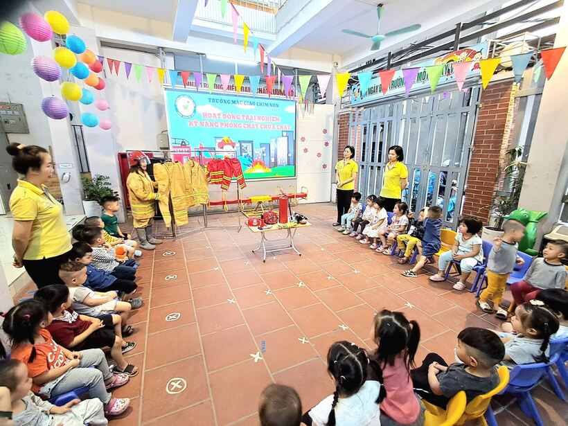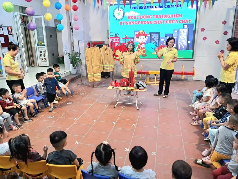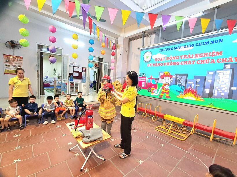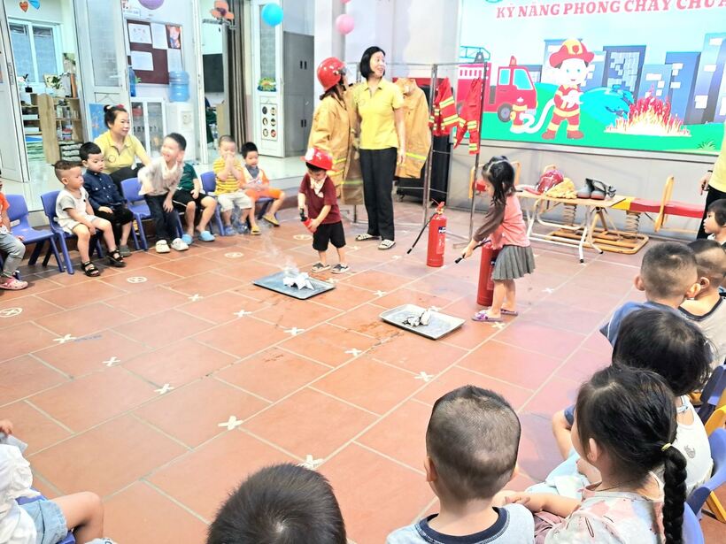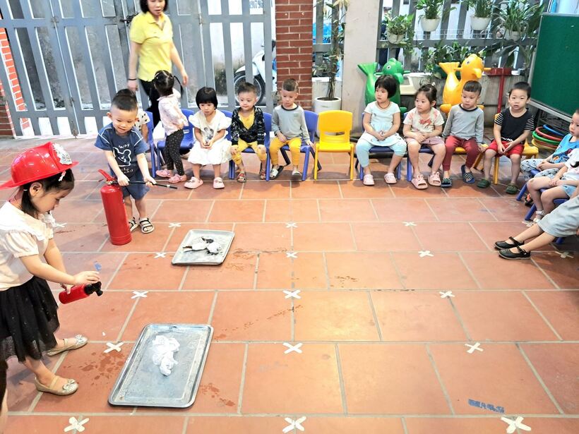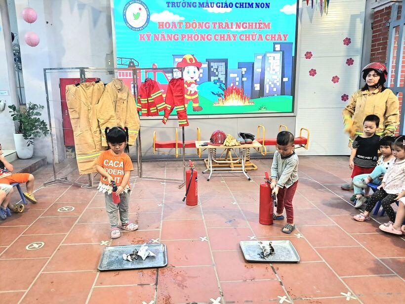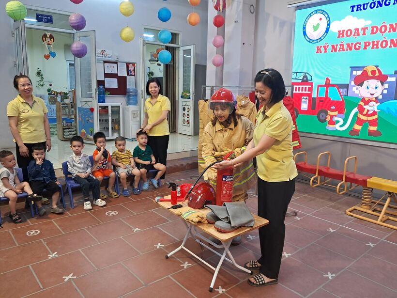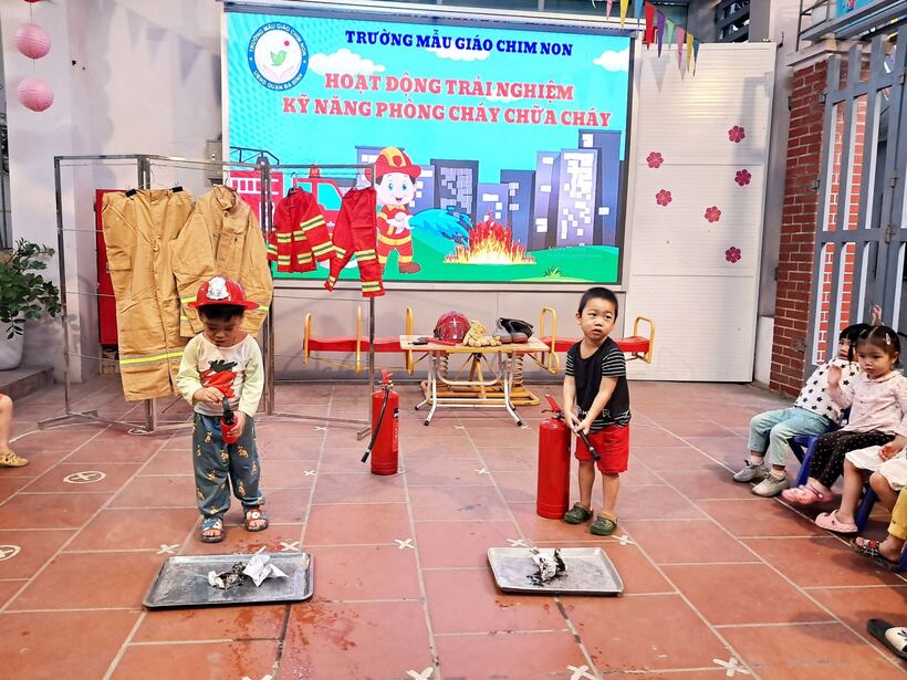 Mục đích chính của việc trang bị kỹ năng phòng chống hỏa hoạn trong chương trình giáo dục mầm non này là giúp trẻ nhận biết những mối nguy hiểm tiềm tàng xung quanh, nhận biết các nguyên nhân gây ra hỏa hoạn và cách phòng tránh. Sáng ngày 31/10, các bạn nhỏ 2 lớp MG bé C1 và C2 đã cùng nhau trải nghiệm tìm hiểu về trang phục, đồ dùng cứu hỏa và cách sử dụng bình cứu hỏa tại chỗ.