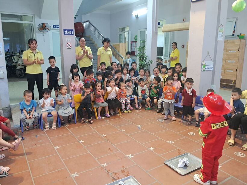 Một số hình ảnh của các bé lớp Mẫu giáo bé C1, C2 trong hoạt động trải nghiệm "Chú lính cứu hỏa tí hon"