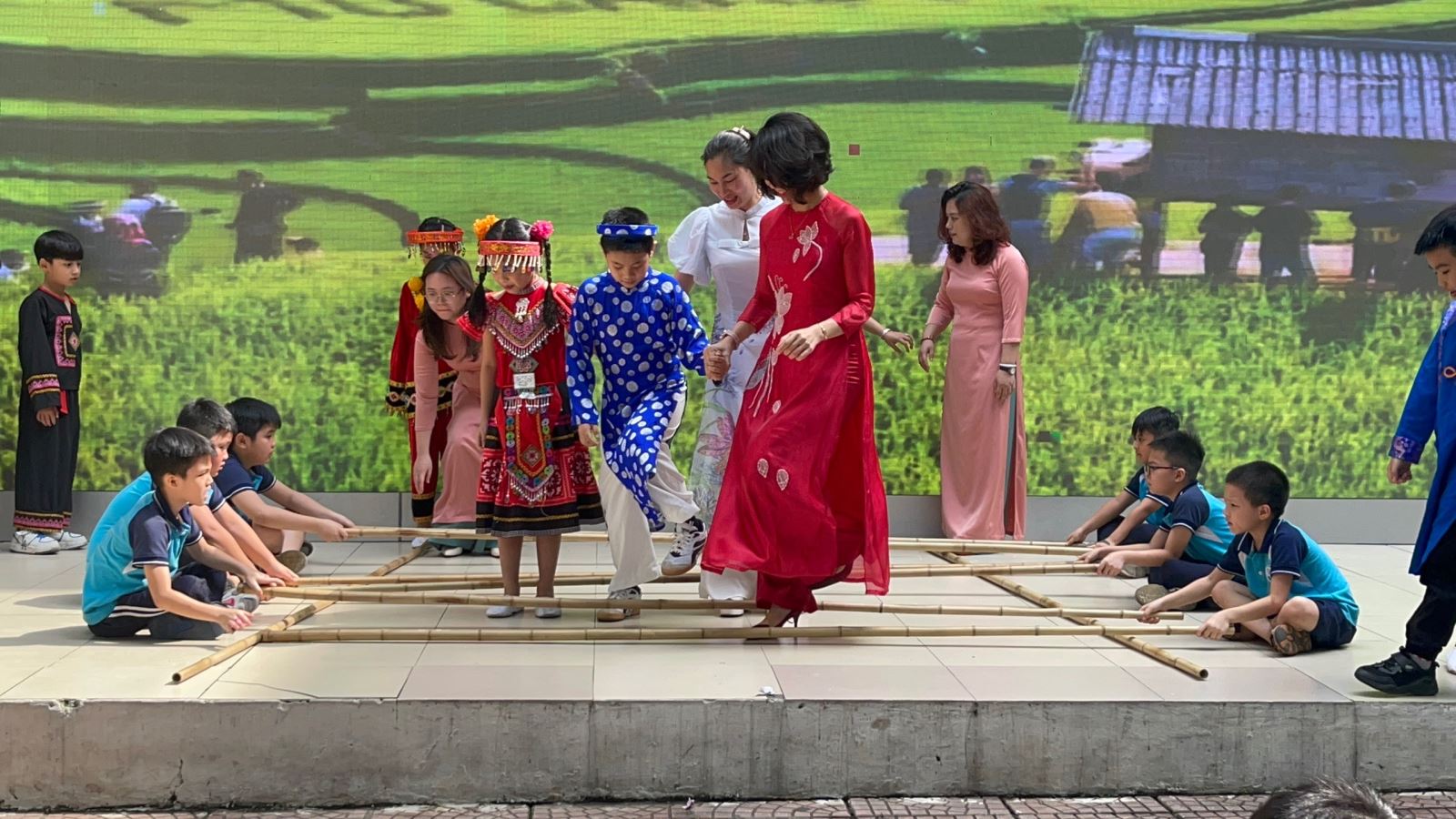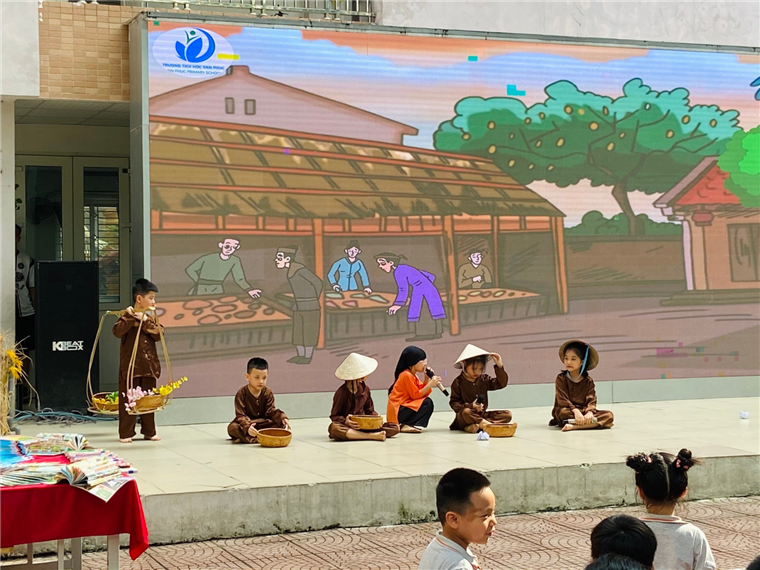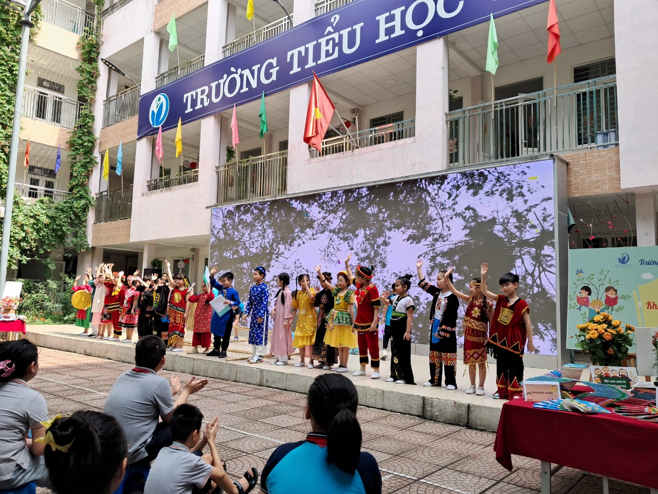 Sau các hoạt động sân khấu hóa các tác phẩm văn học và phần trình diễn thời trang dân tộc và trình bày triển lãm sách của các khối trong nhà trường, các bé đã được xem giao lưu múa sạp giữa 2 nhà trường.