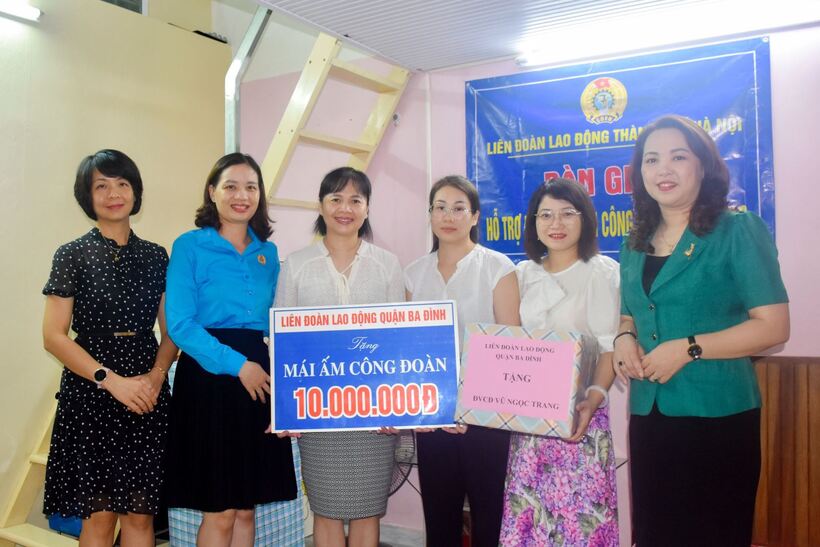 Ngày 10/8, Liên đoàn Lao động (LĐLĐ) quận Ba Đình tổ chức trao hỗ trợ kinh phí sửa chữa “Mái ấm Công đoàn” cho đoàn viên Vũ Ngọc Trang (nhân viên Trường Mẫu giáo Chim Non) và đoàn viên Phạm Trung Thu (công nhân Xưởng in chữ Braile, Hội Người mù Việt Nam).