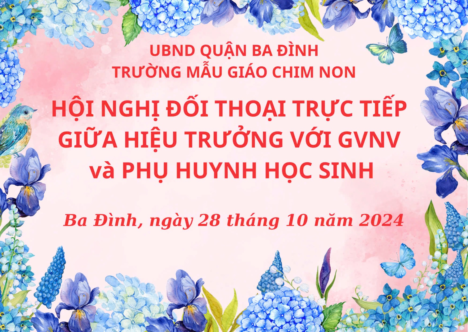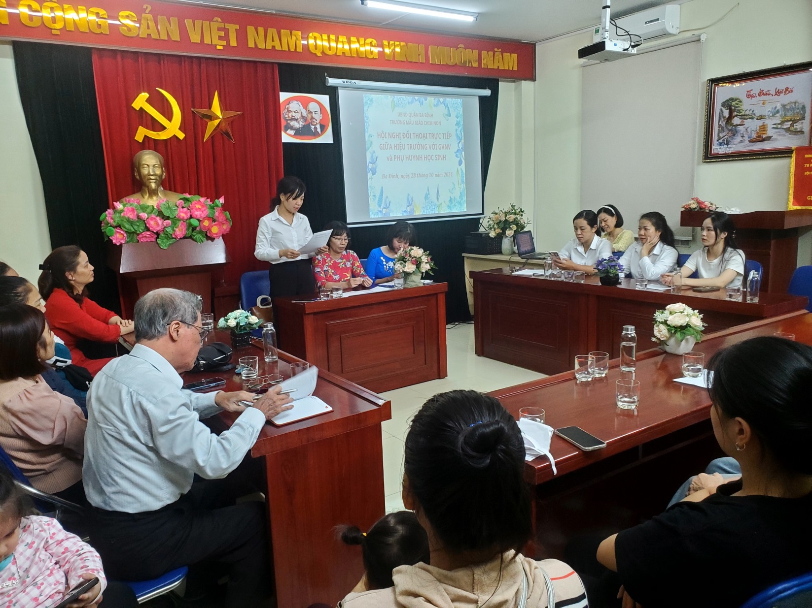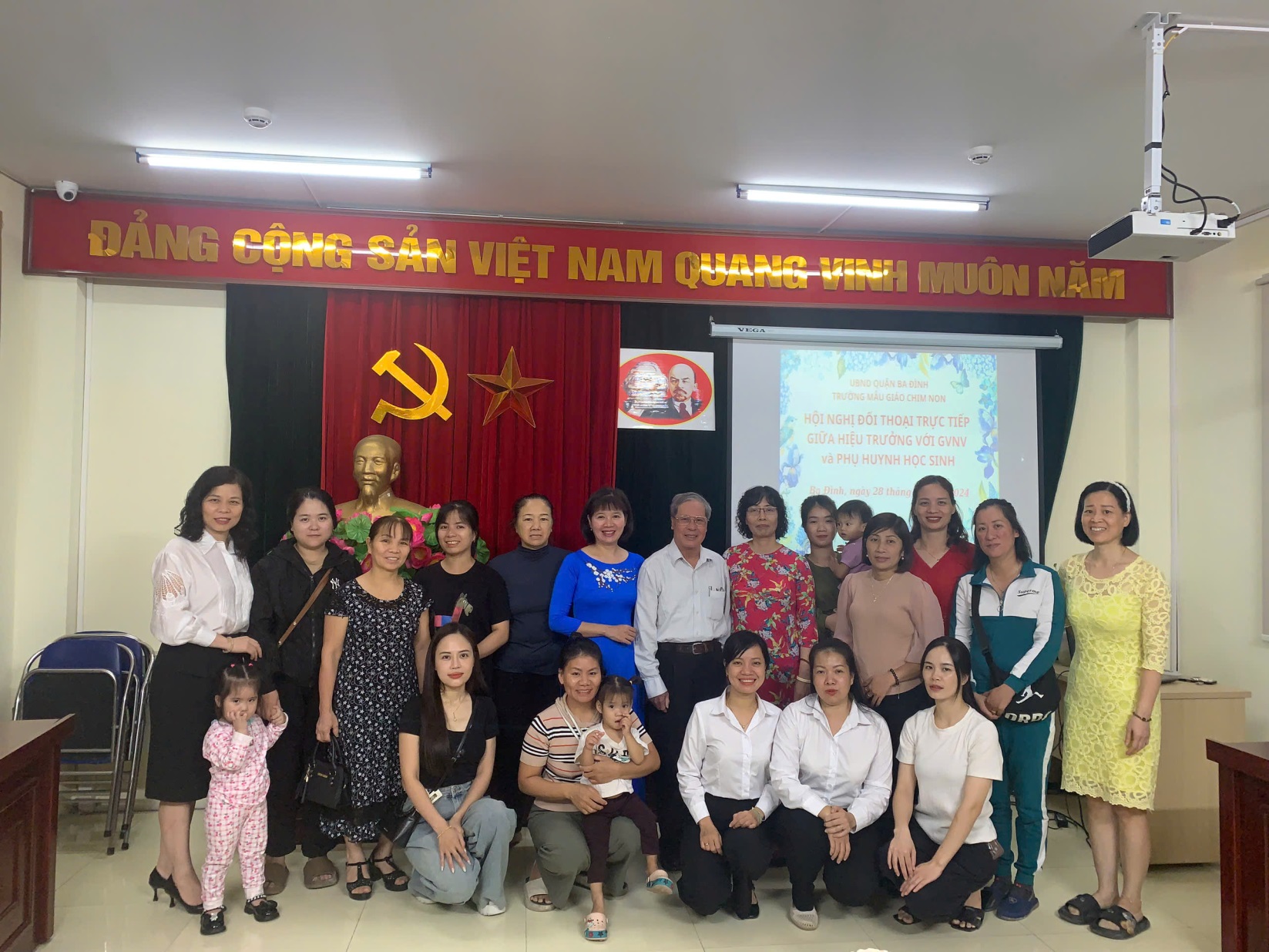 Chiều 28/10/2024, trường Mẫu giáo Chim Non đã long trọng tổ chức Hội nghị Tiếp xúc, đối thoại trực tiếp giữa người đứng đầu cấp ủy- Hiệu trưởng với đội ngũ CB - GV- NV và PHHS năm học 2024 - 2025.