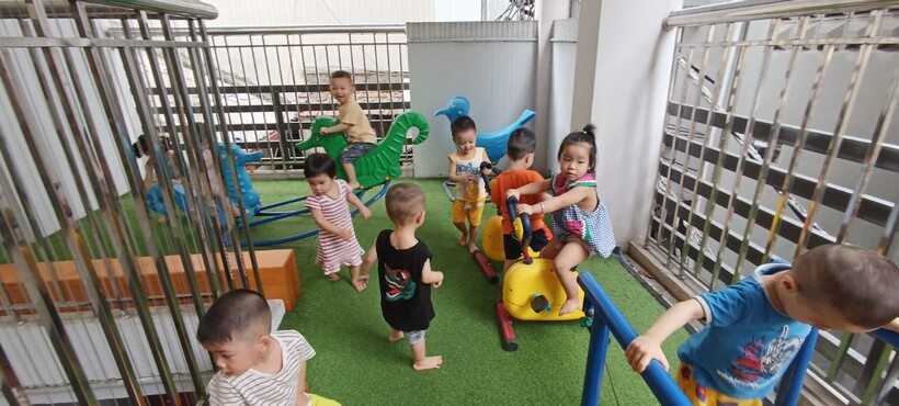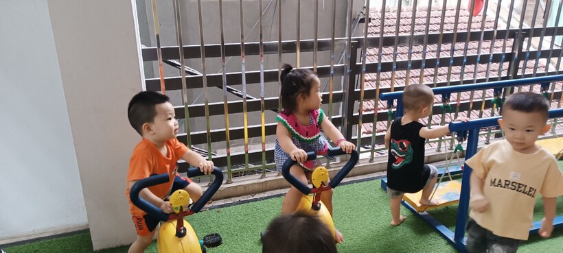 tại khu vui chơi ở trường mầm non sau giờ học )