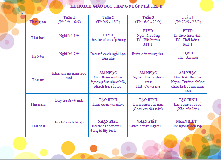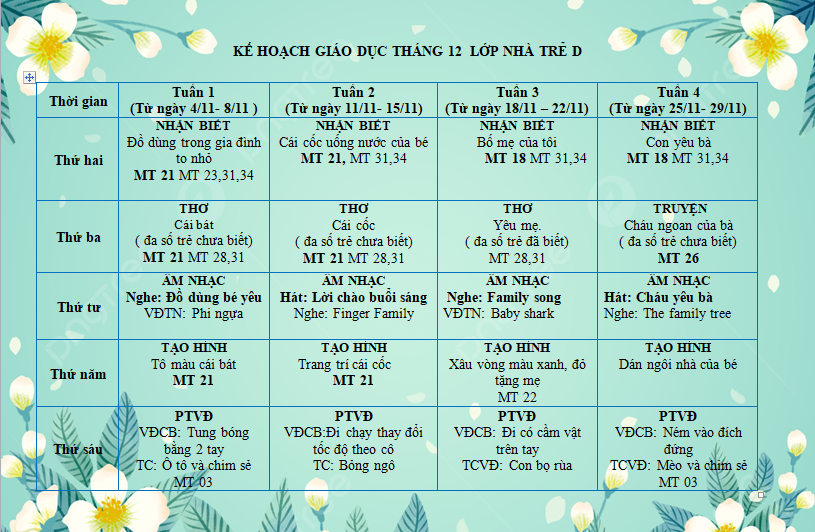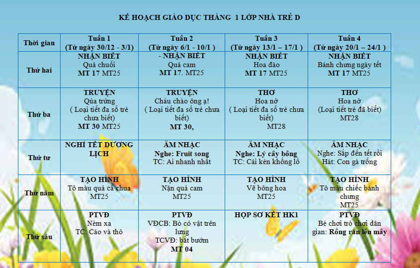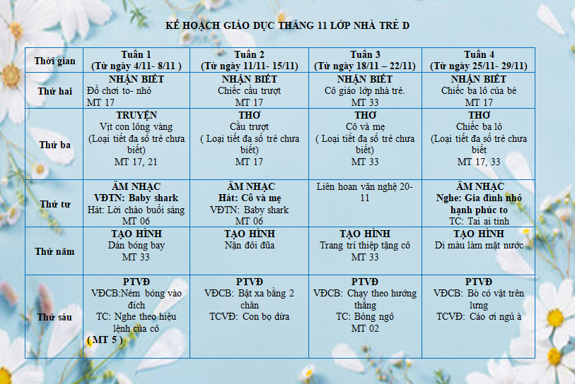 Kế hoạch giáo dục lớp D năm học 2024-2025