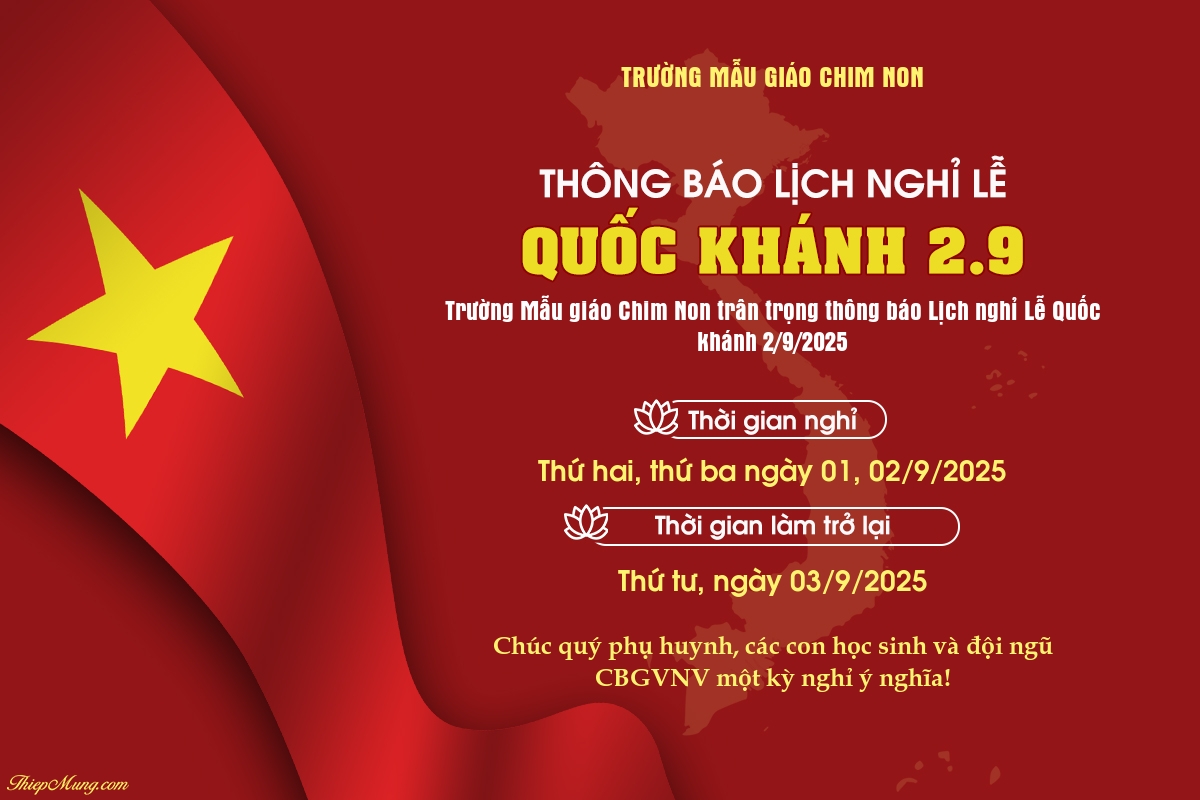 Trường Mẫu giáo Chim Non trân trọng thông báo Lịch nghỉ Lễ Quốc khánh 2/9/2025
