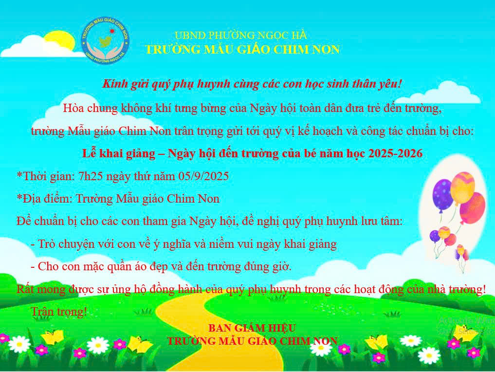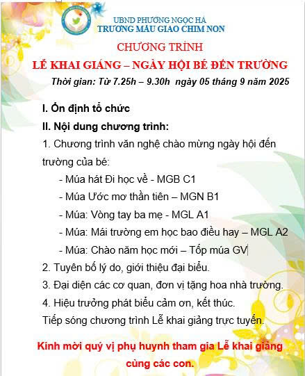 Kính gửi quý phụ huynh kế hoạch và chương trình Lễ khai giảng năm học 2025-2026 trường Mẫu giáo Chim Non